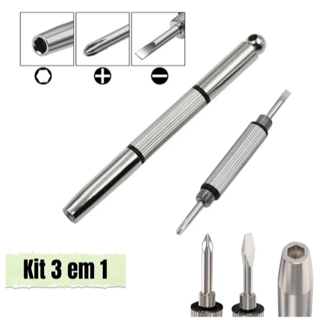 Conjunto 3 em 1 Mini Chaves 6,5 mm Fenda/Phillips/Hex para Celular, Computador, Câmera e Óculos