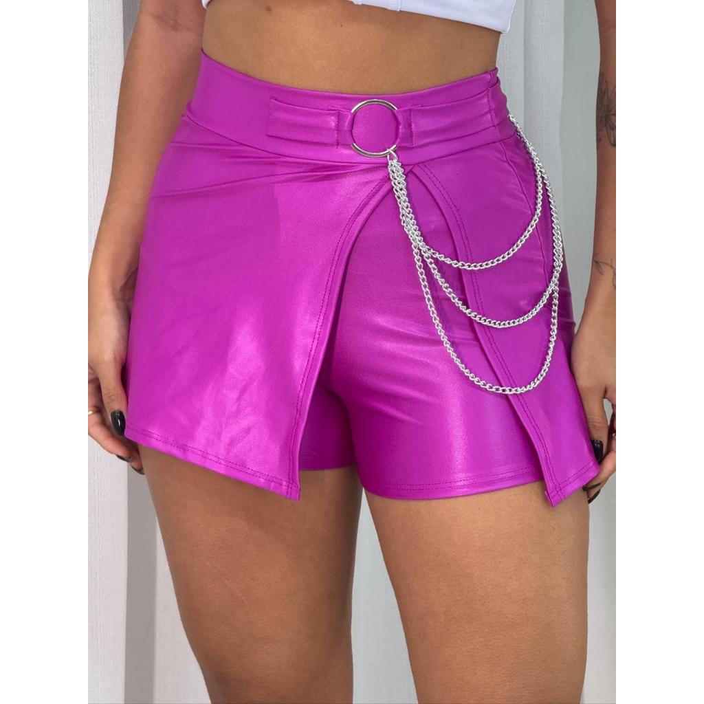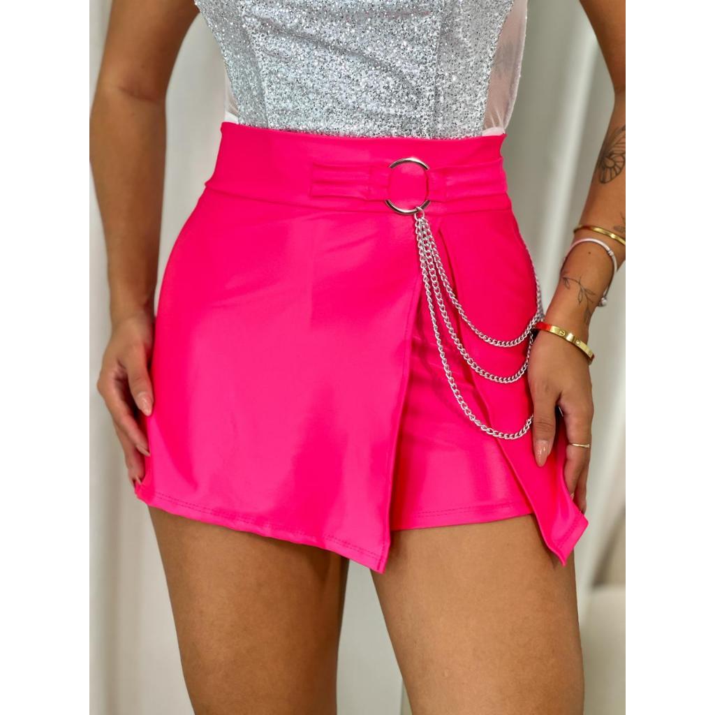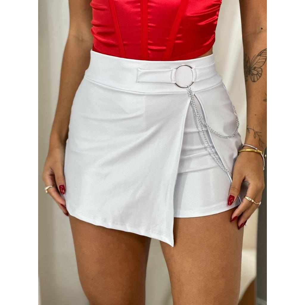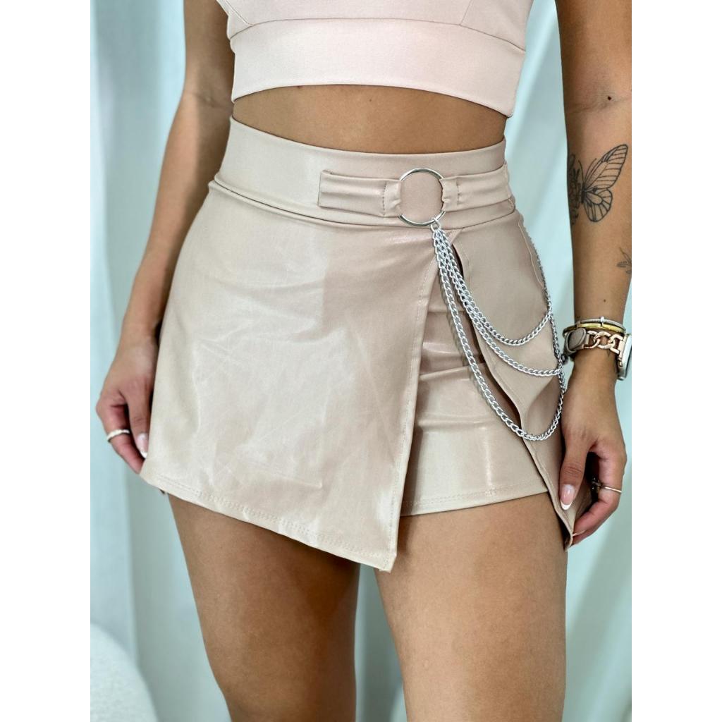 Short Saia com Corrente Lateral Argola Detalhe em Dourado Tendencia
