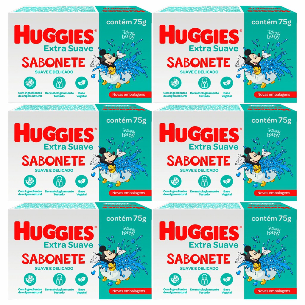 Kit 6 Sabonete Huggies Disney Baby Extra Suave Barra 75g