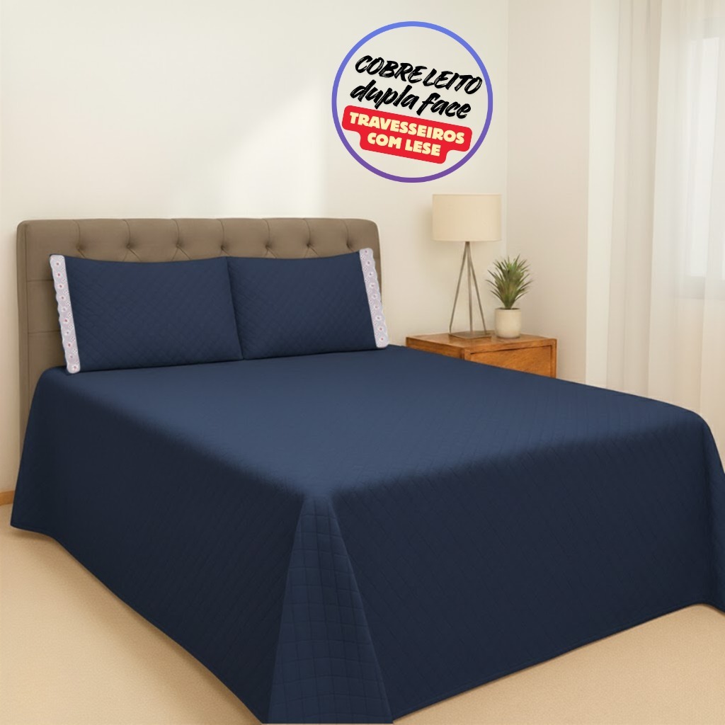 Colcha Cobre Leito Casal Padrão 3 Peças Dupla Face