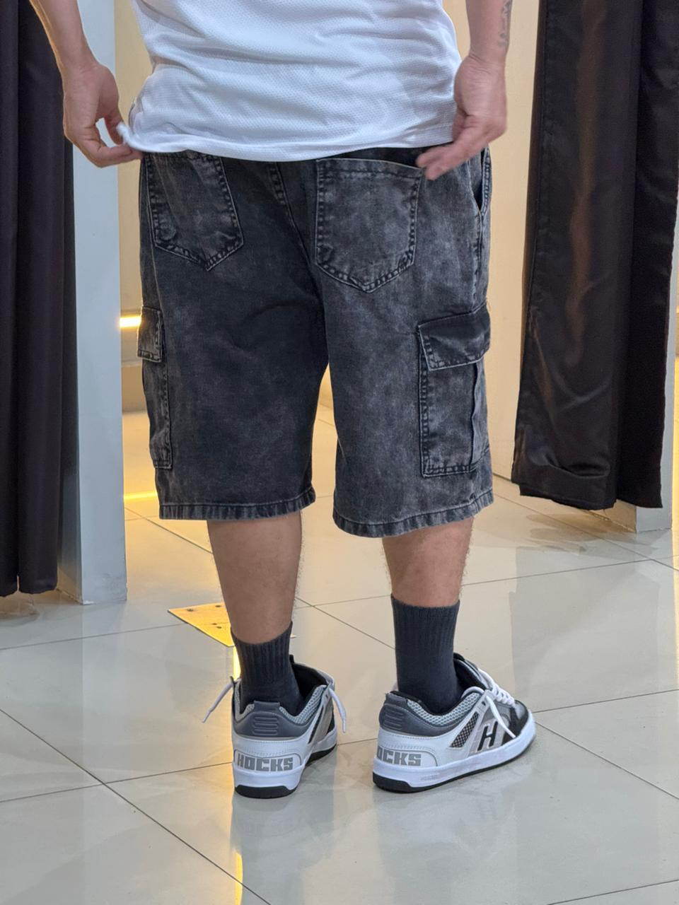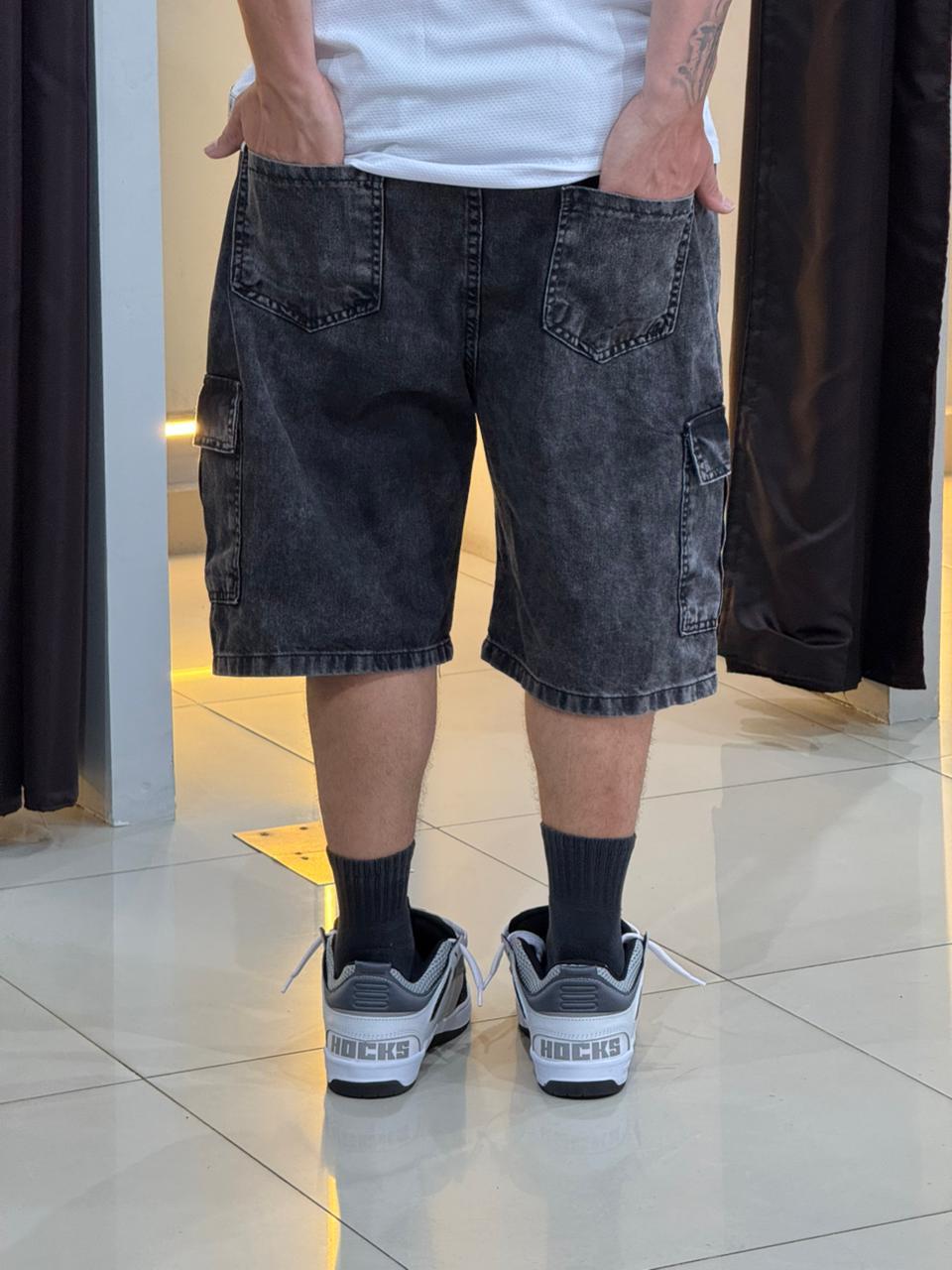 Bermuda Cargo Masculino Bolso Lateral Skatista Streetwear Preta Mescla Cinza Grafite