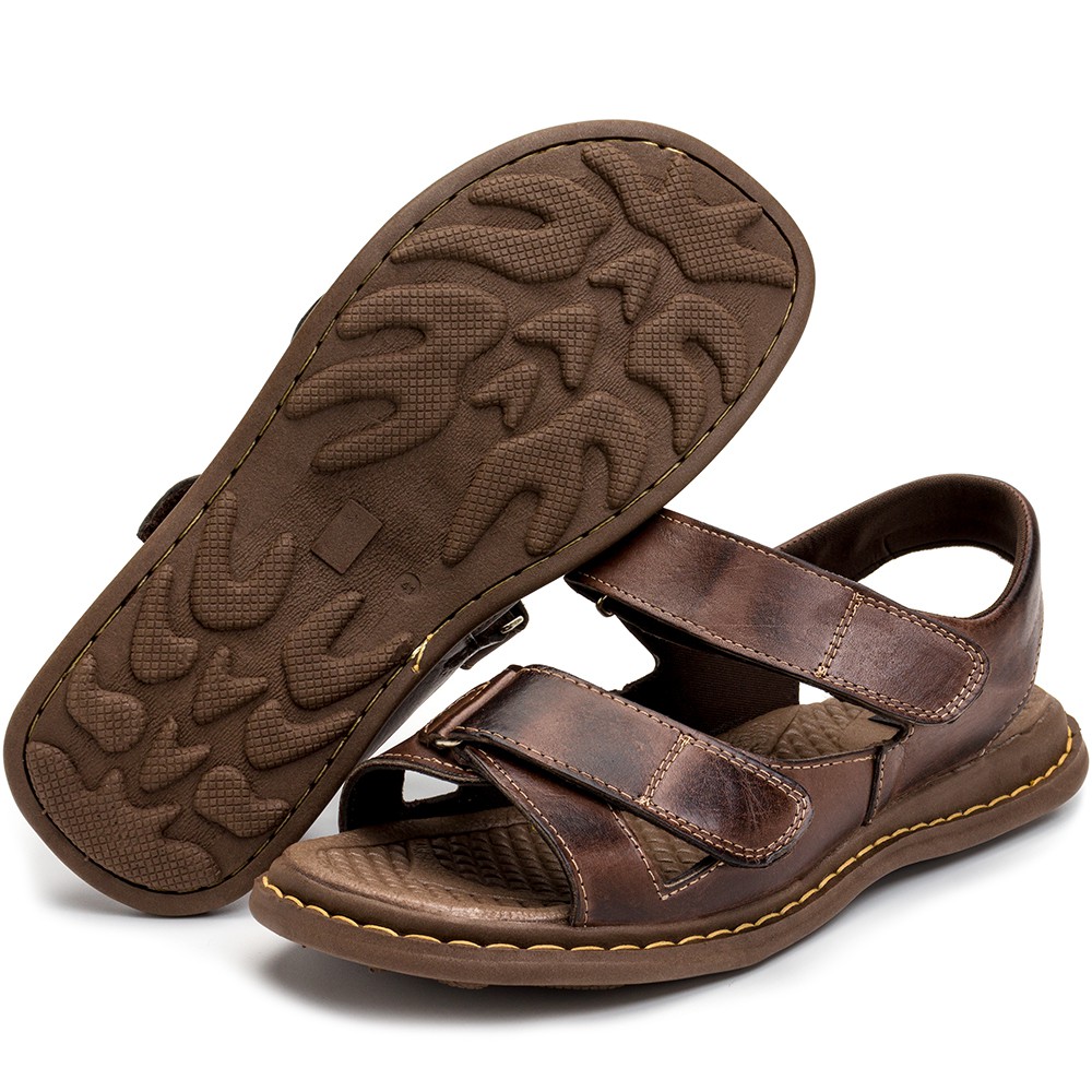 Sandália Ortopédica Masculina Anti Stress Couro Legítimo