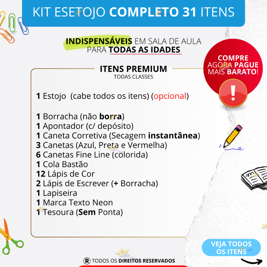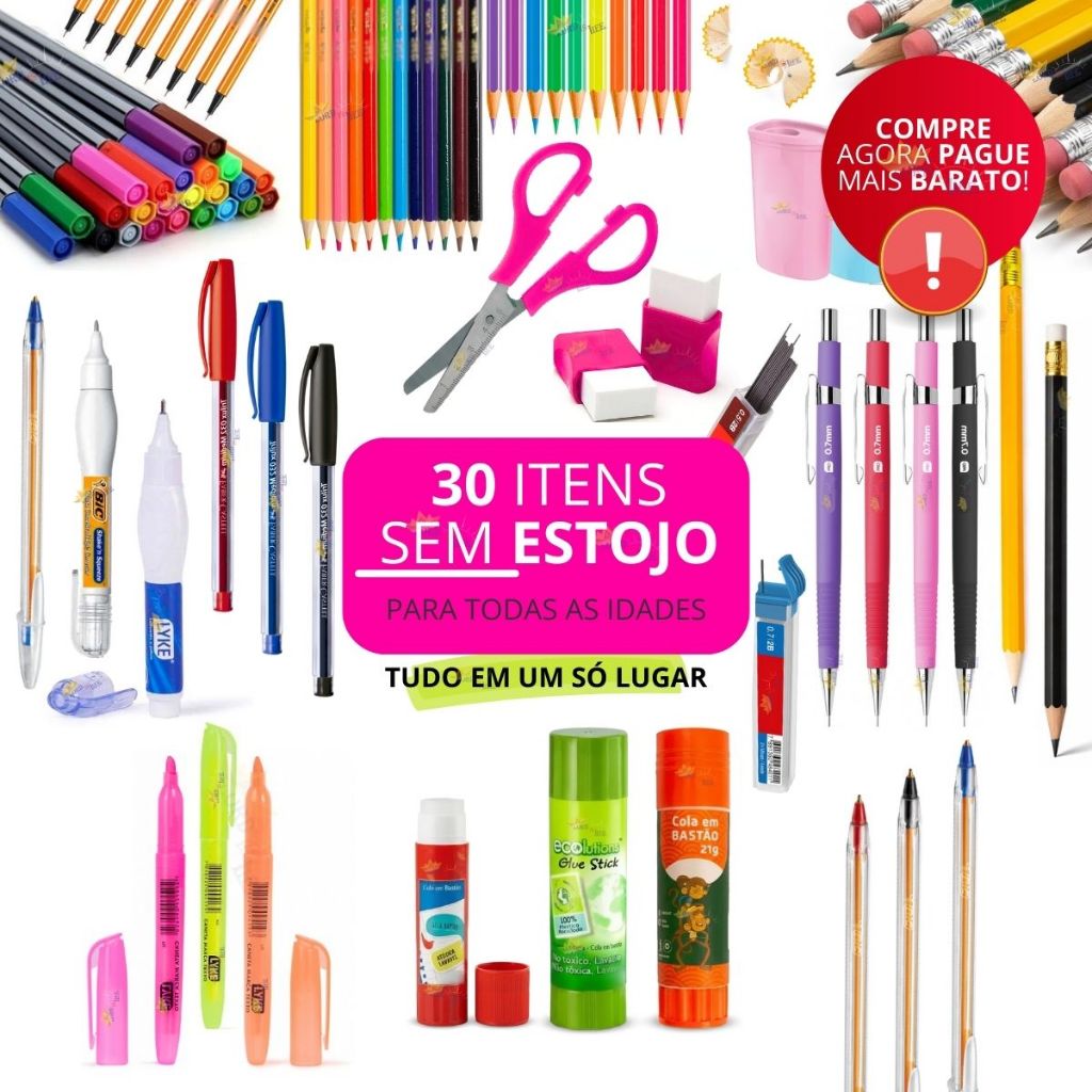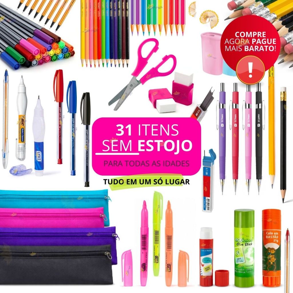 Estojo Escolar Masculino Material Escolar Completo Lapis de Cor Canetas Coloridas Kit Marca Texto