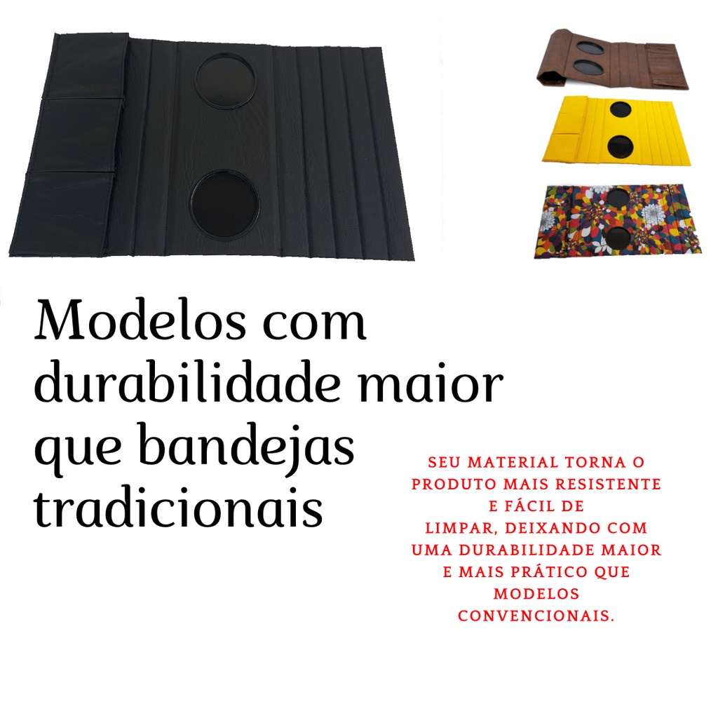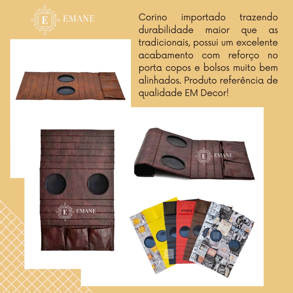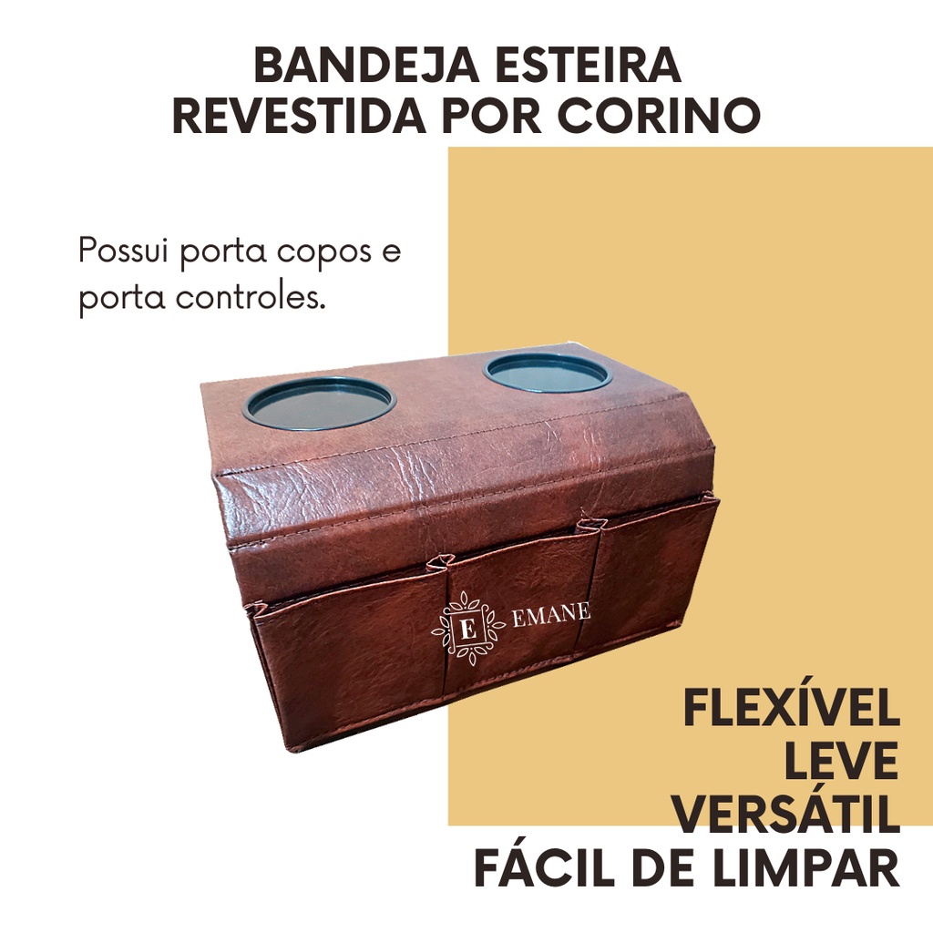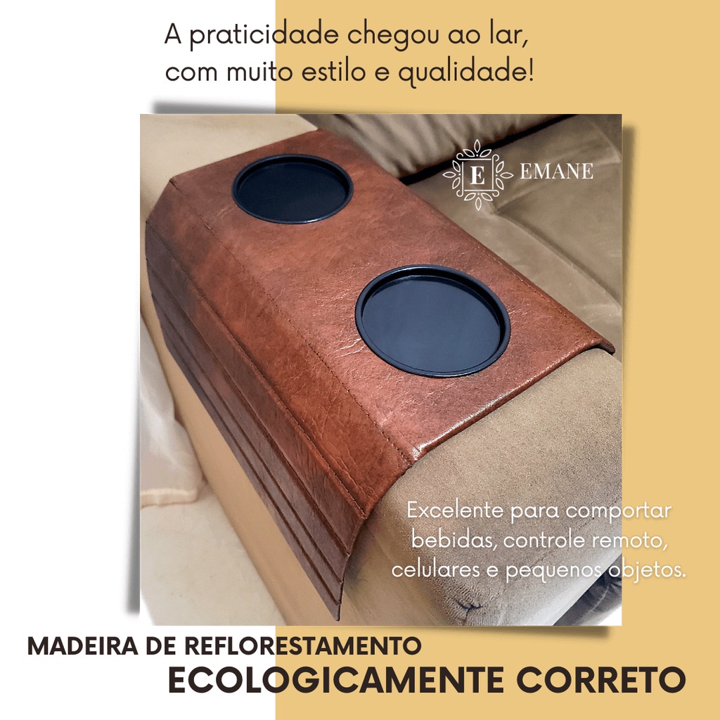 Bandeja Esteira Porta Copos Sofá Corino Suporte de Controles Apoio de Copo Costurada Durabilidade Maior
