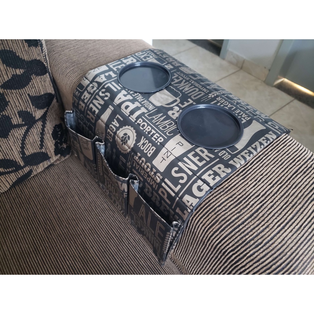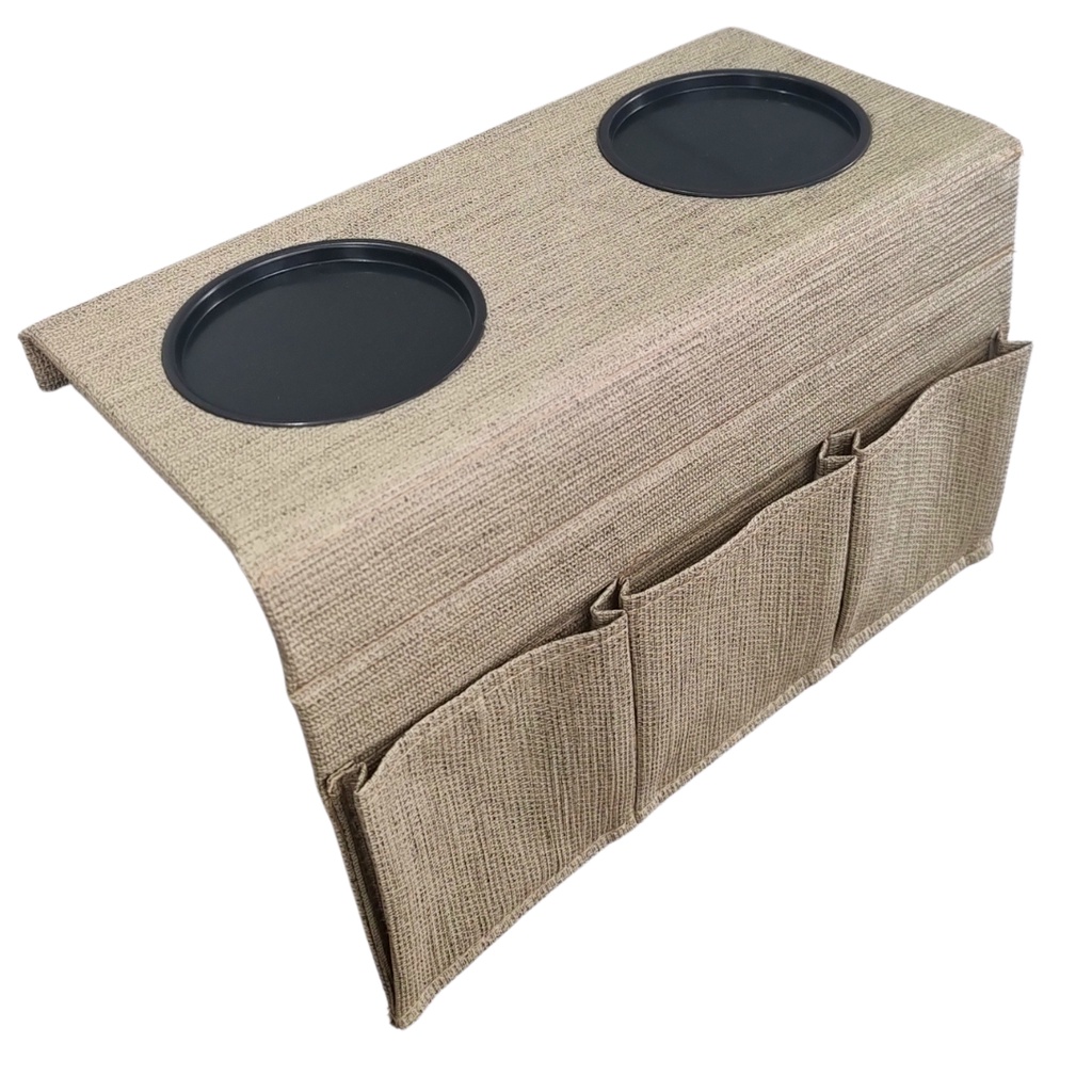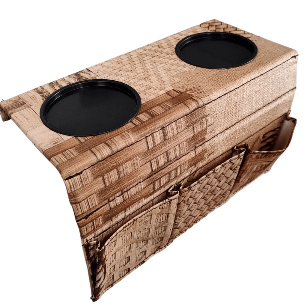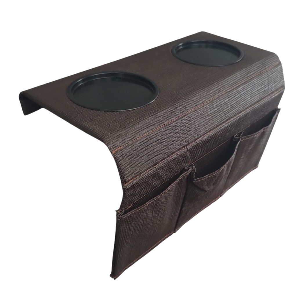 Bandeja Esteira Porta Copos Sofá Corino Suporte de Controles Apoio de Copo Costurada Durabilidade Maior