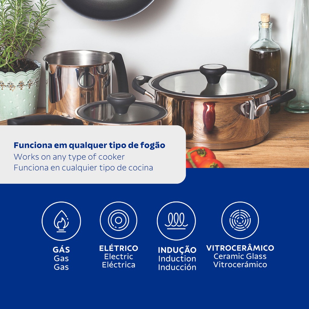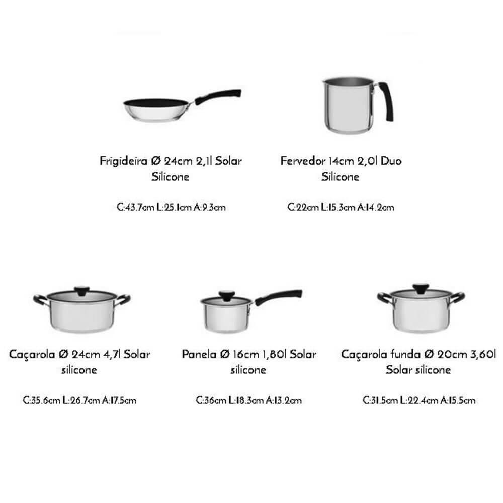 Jogo de Panelas Tramontina Solar Silicone em Aço Inox com Fundo Triplo 5 Peças