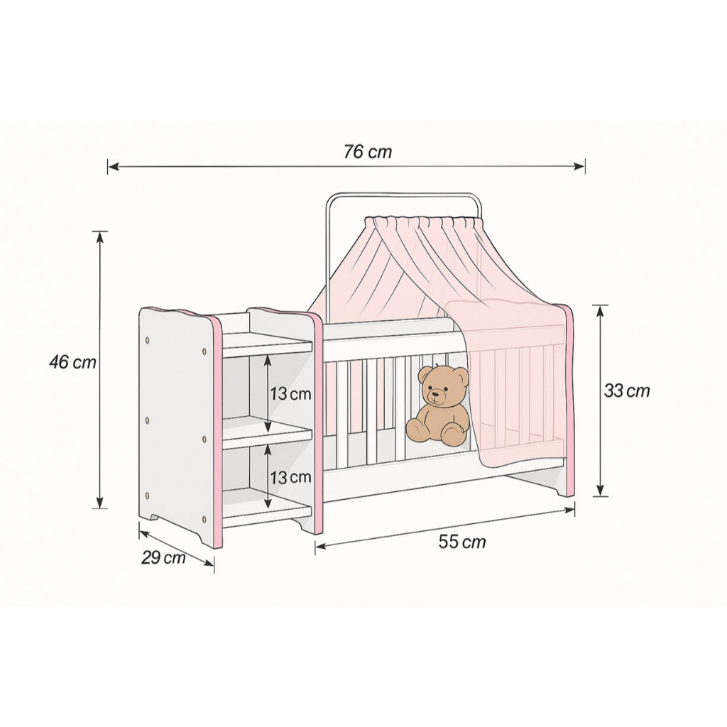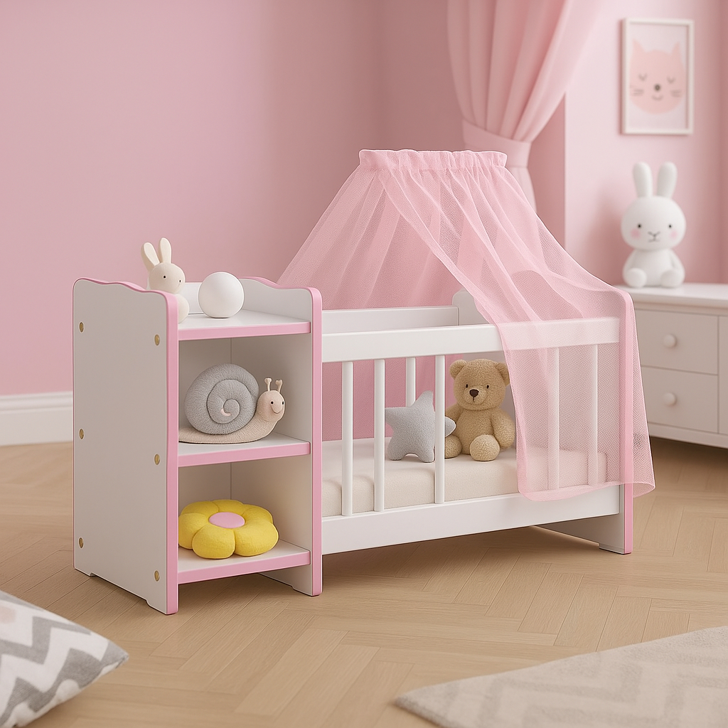 Brinquedos | Berço de Boneca Infantil Cômoda Véu | Reborns | Cores | Pronta Entrega