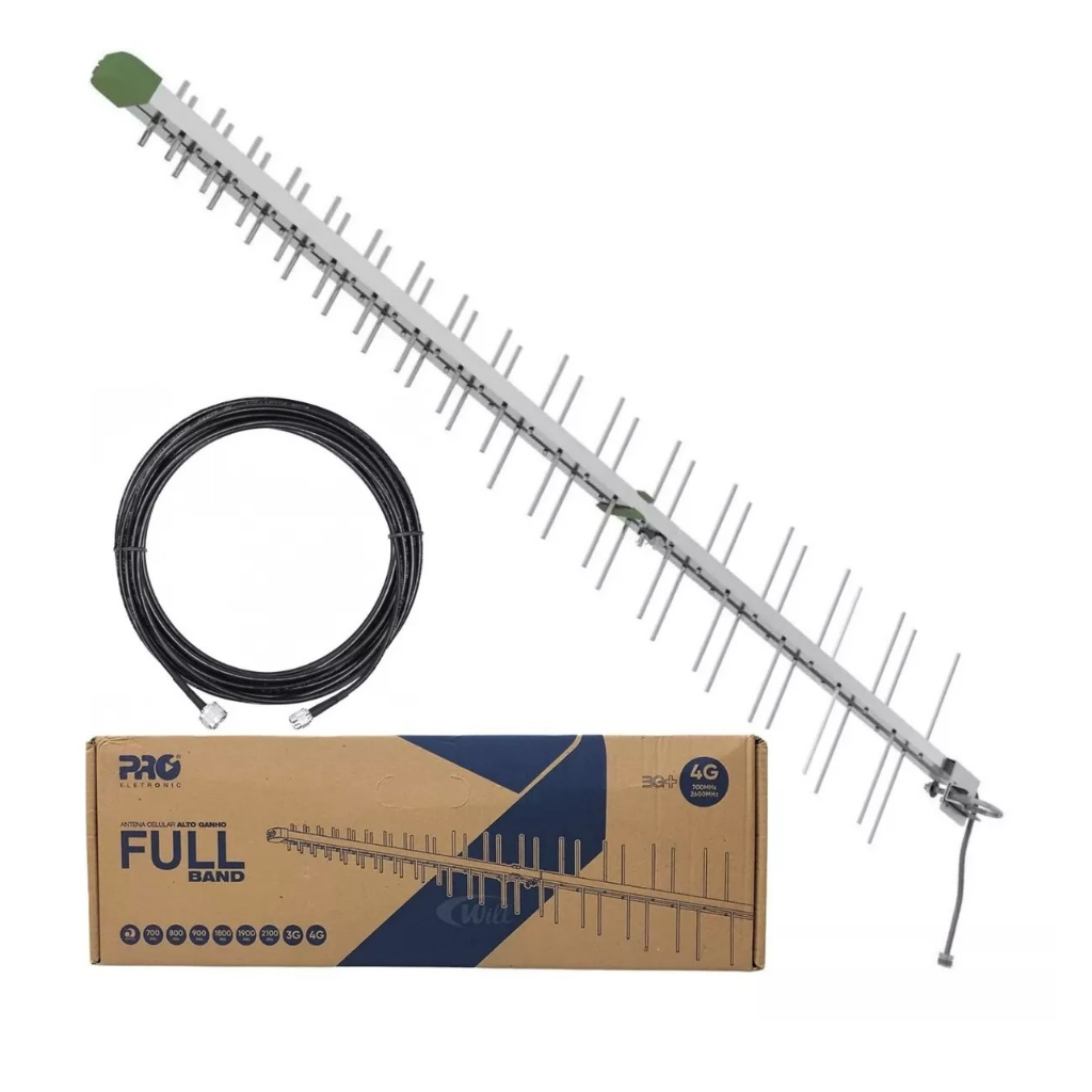 KIT Antena Proeltronic Full band para Cel Internet Rural Roteadores 4g / Cabo descida de 15mt conector Sma macho