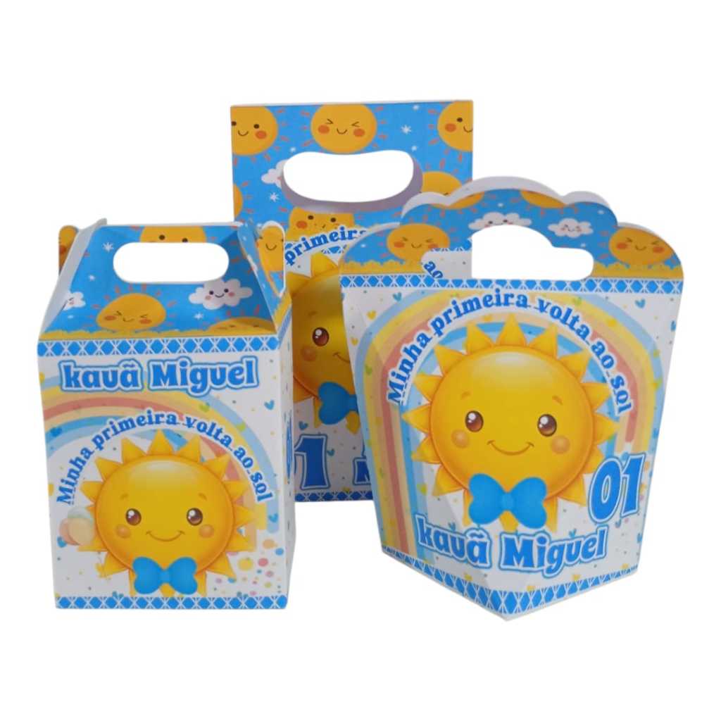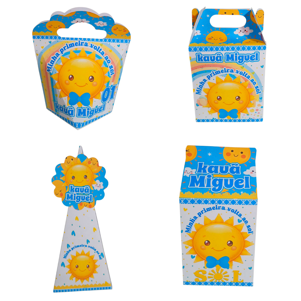 Kit Festa Personalizada Minha Primeira Volta ao Sol Menino + 20 Tags Para Docinhos