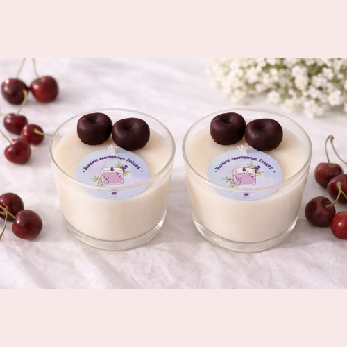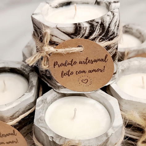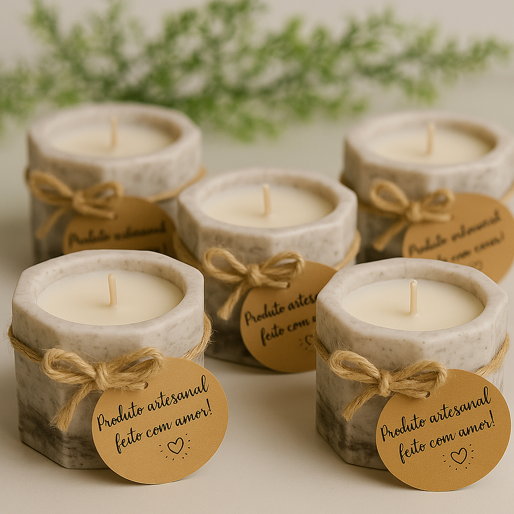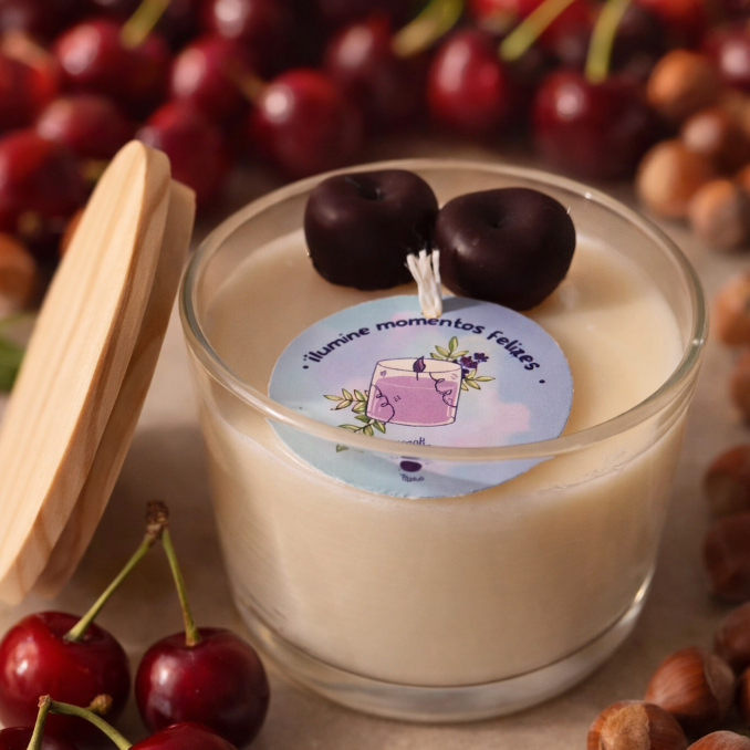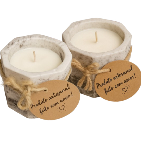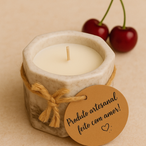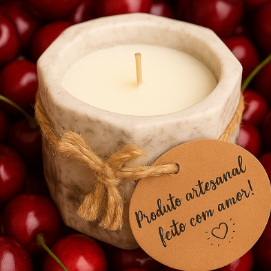Vela Aromática 35g Cereja e Avelã Perfumada Artesanal 100% Vegetal Premium Vaso de Gesso Vasinho