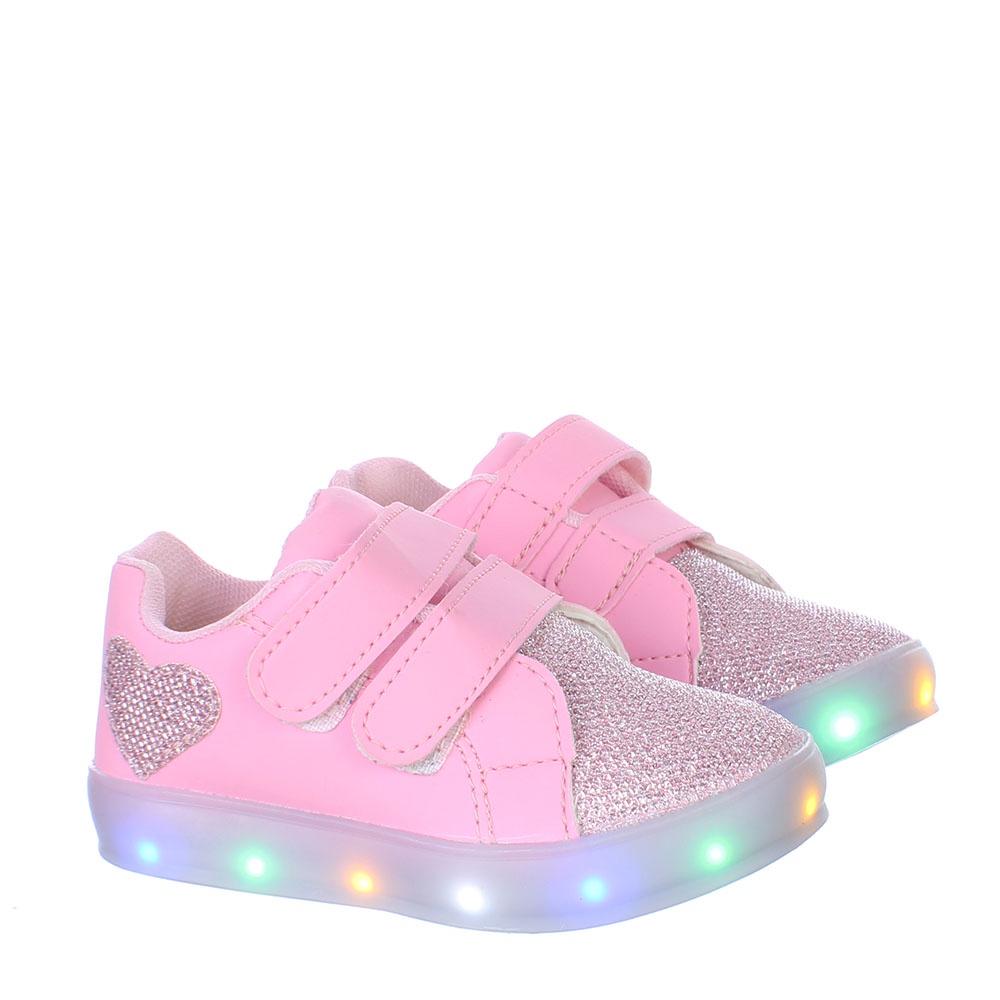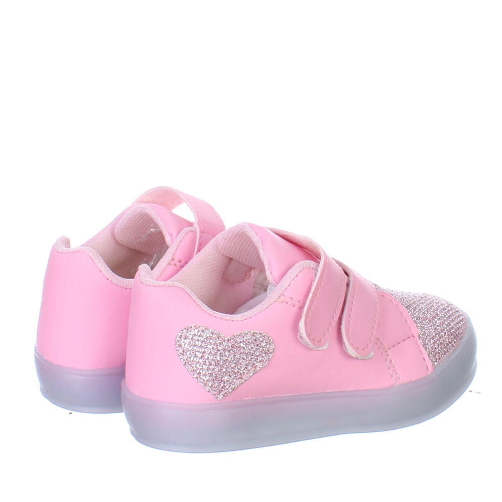 Tenis Calcado de Luz Pisca Infantil Feminino Rosa Meninas Coracao Glitter