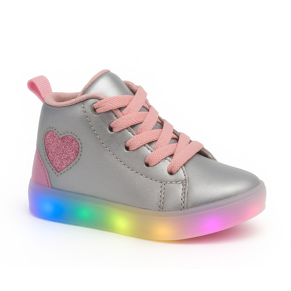 Tenis de Led Infantil Feminino Coração Lançamento Luzinha Pisca Casual Moderno