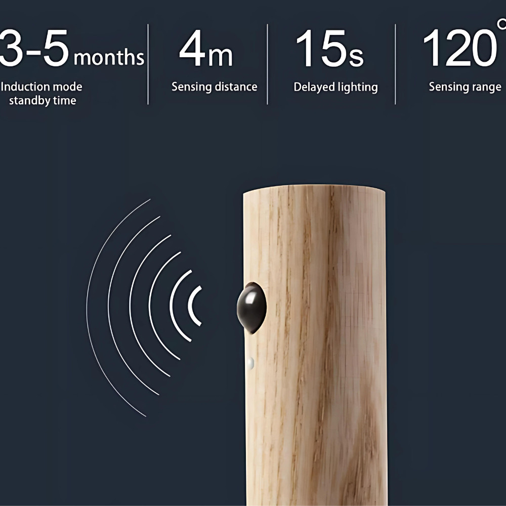 Kit 1/2 pcs Luminária Elegante De Madeira Led Sensor Movimento Presença