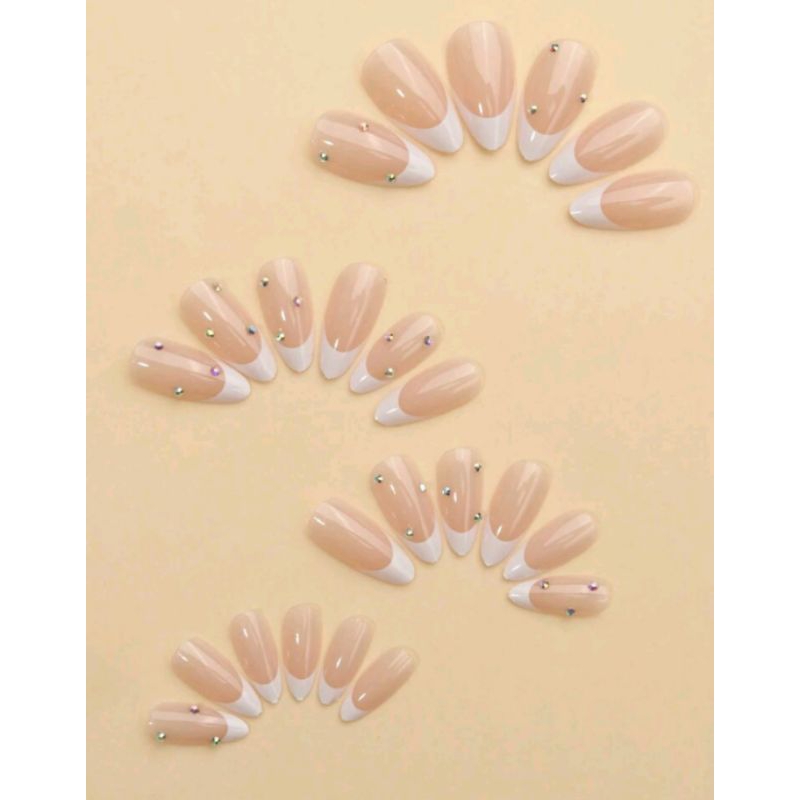 24 Unhas Postiças Decoradas Amendoada Francesinha Strass