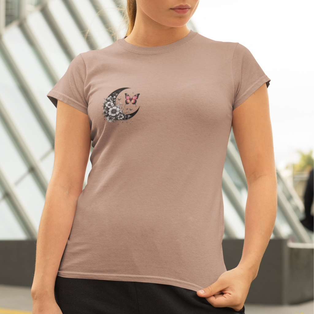 Camiseta Baby Look Premium Feminina T-shirt Estampada Lua Camisa Manga Curta 100% Algodão Plus Size