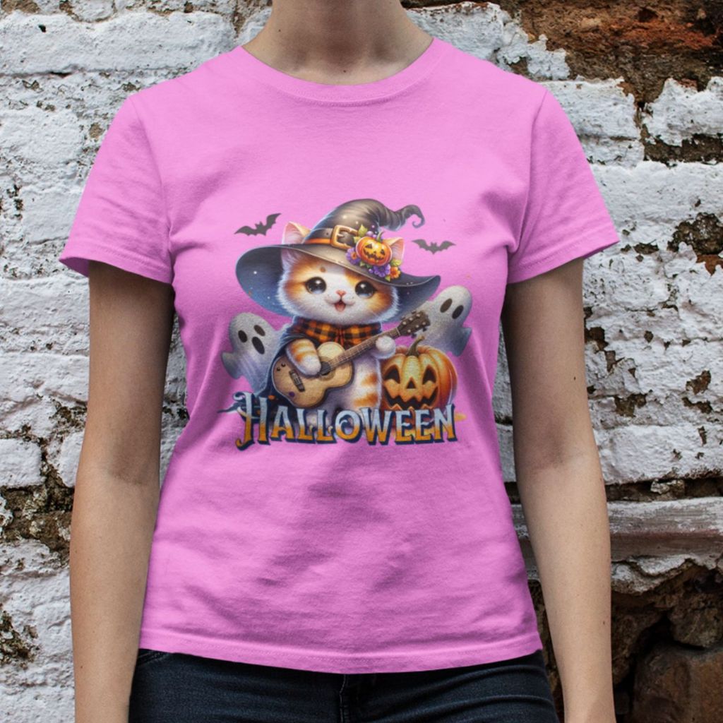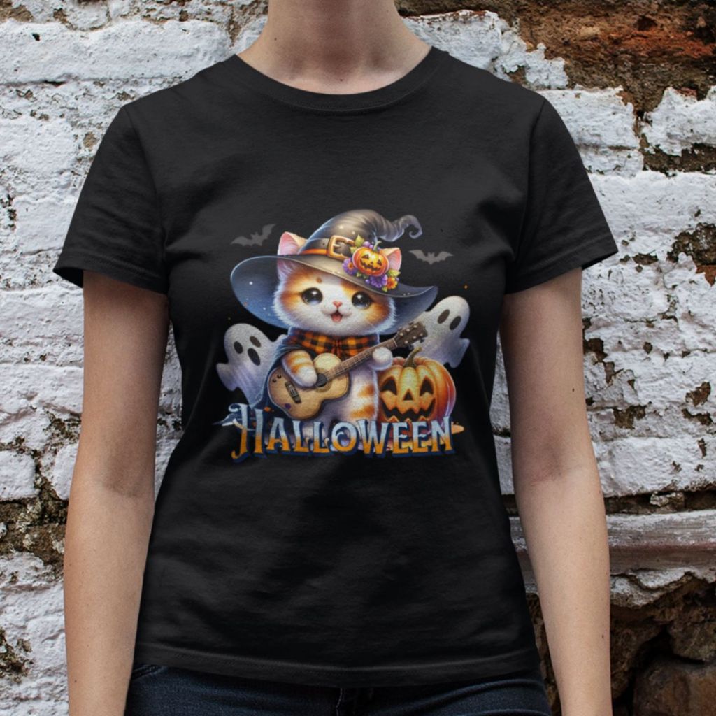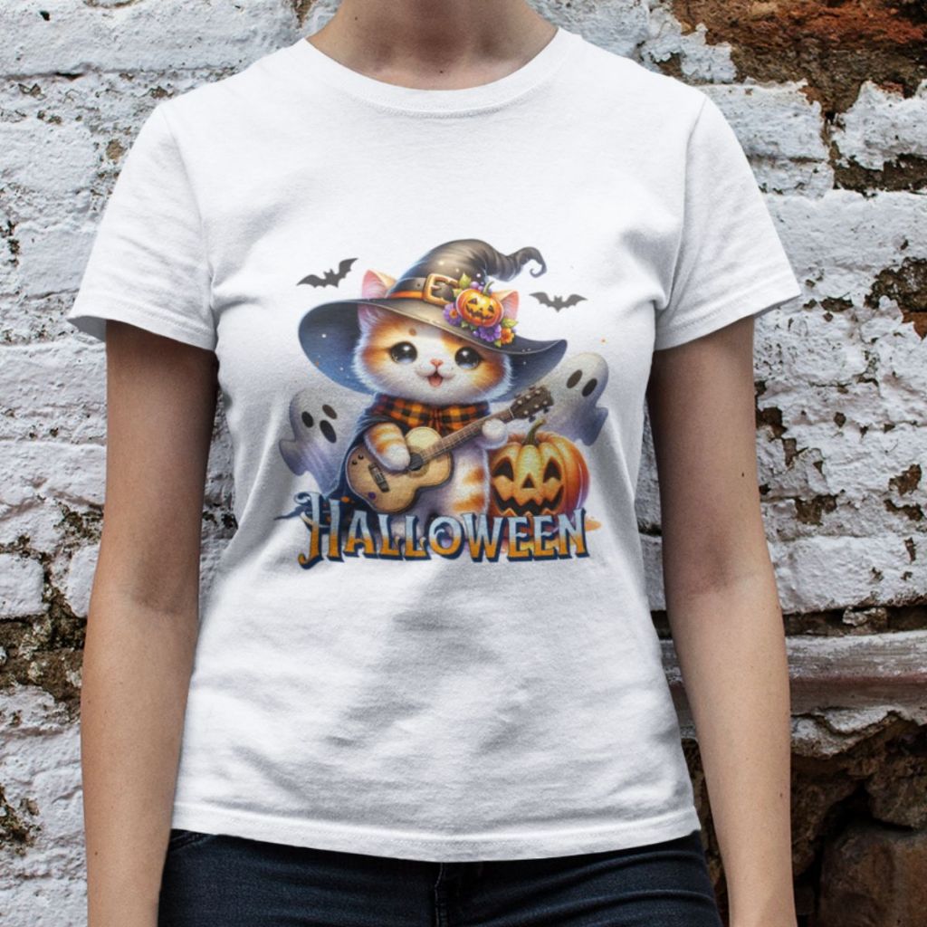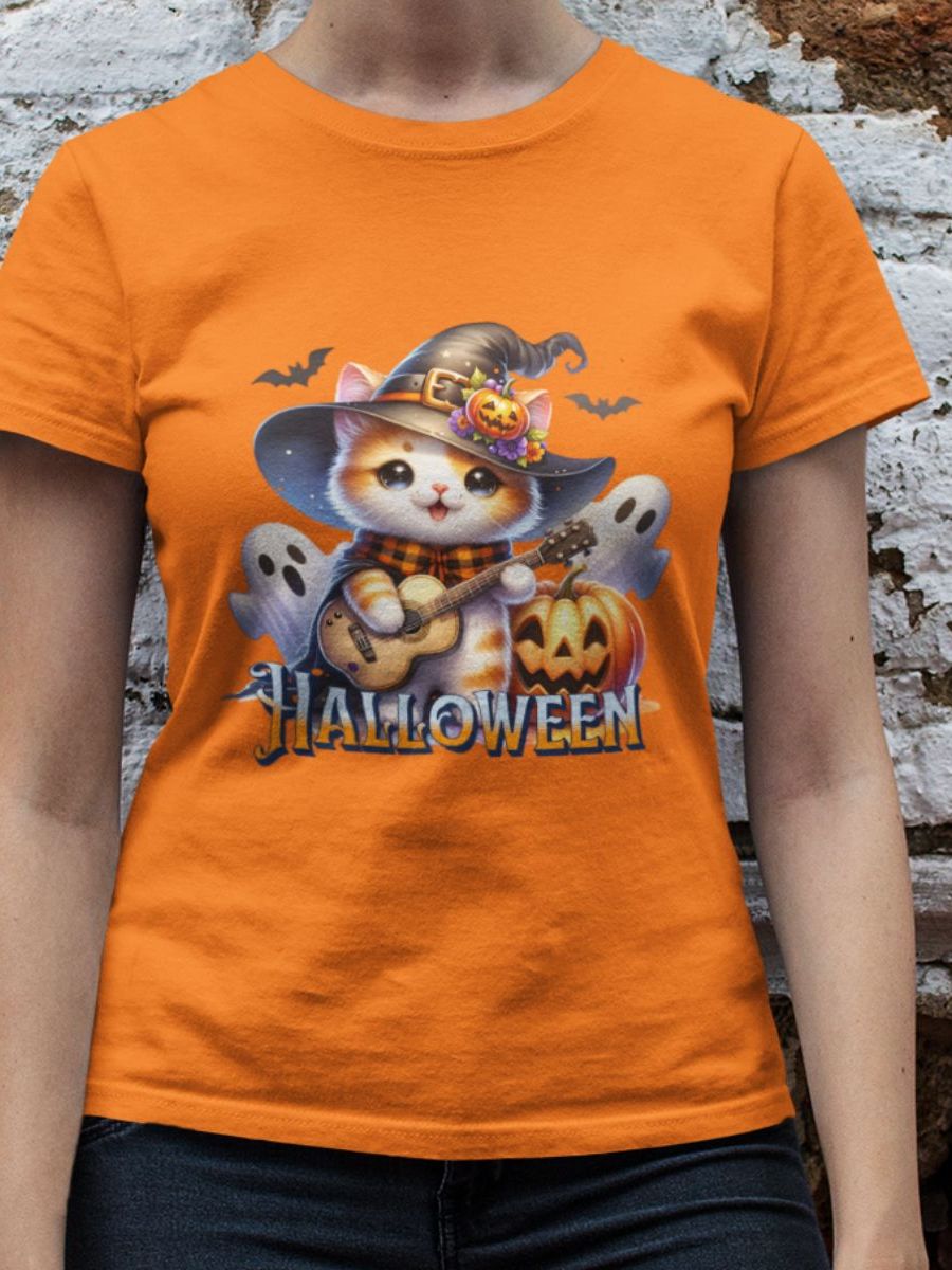 Camiseta Feminina GuGi Algodão Premium T-shirt Baby Look Estampa Cartoon Gato Halloween Plus Size