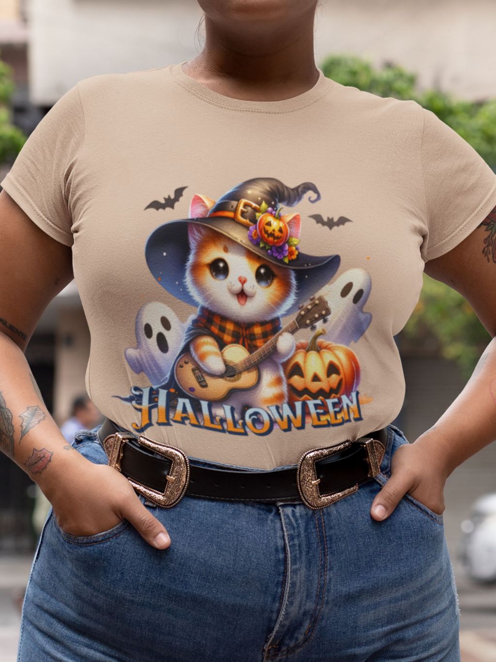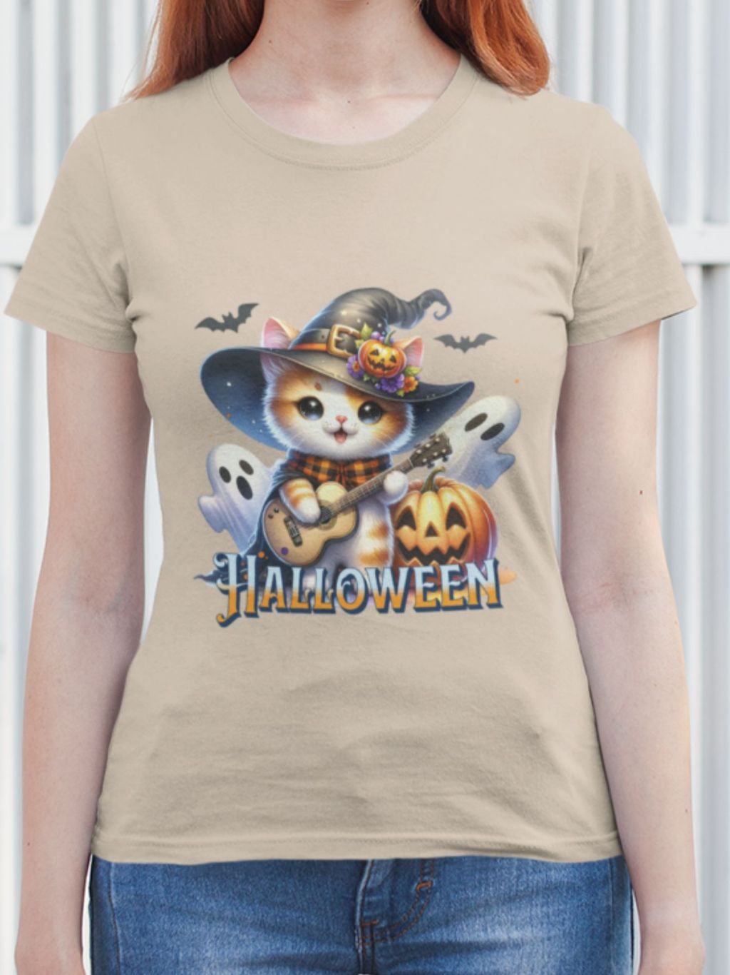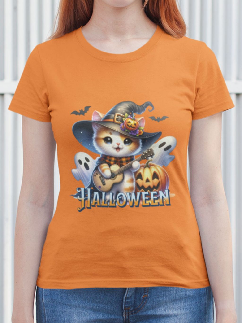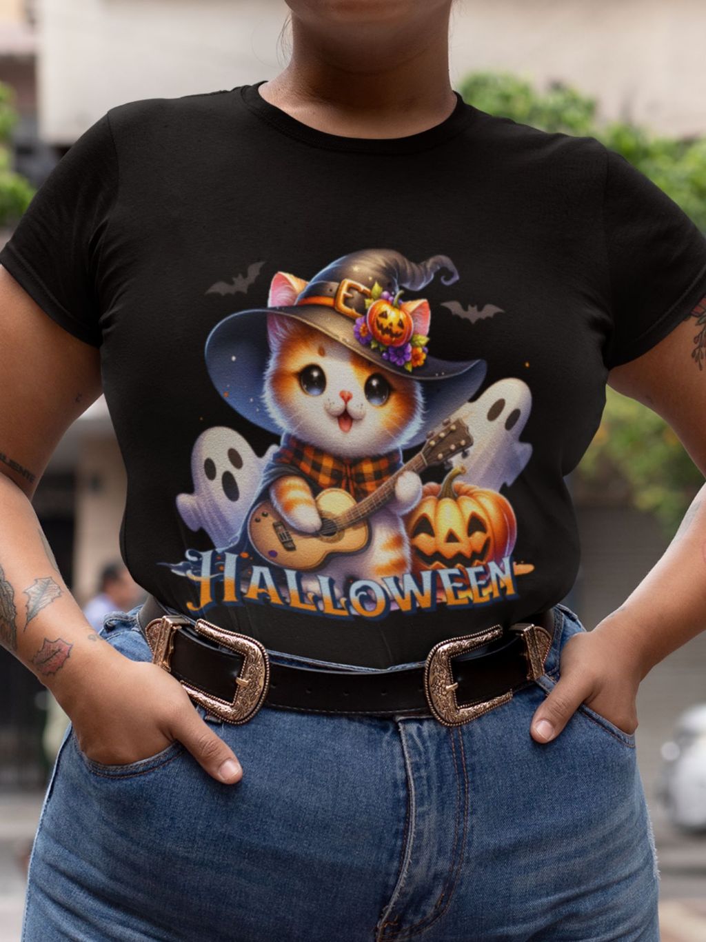 Camiseta Feminina GuGi Algodão Premium T-shirt Baby Look Estampa Cartoon Gato Halloween Plus Size