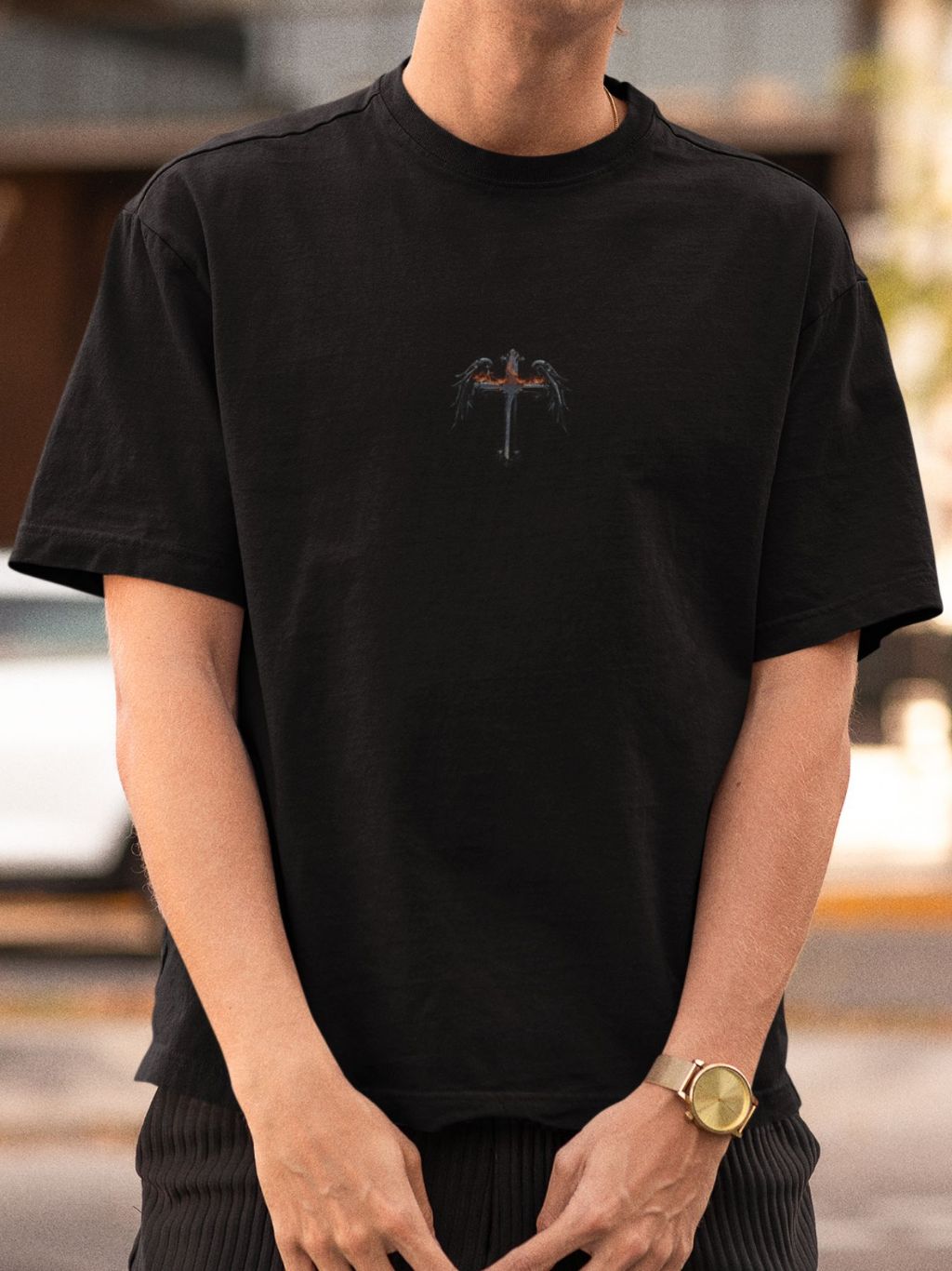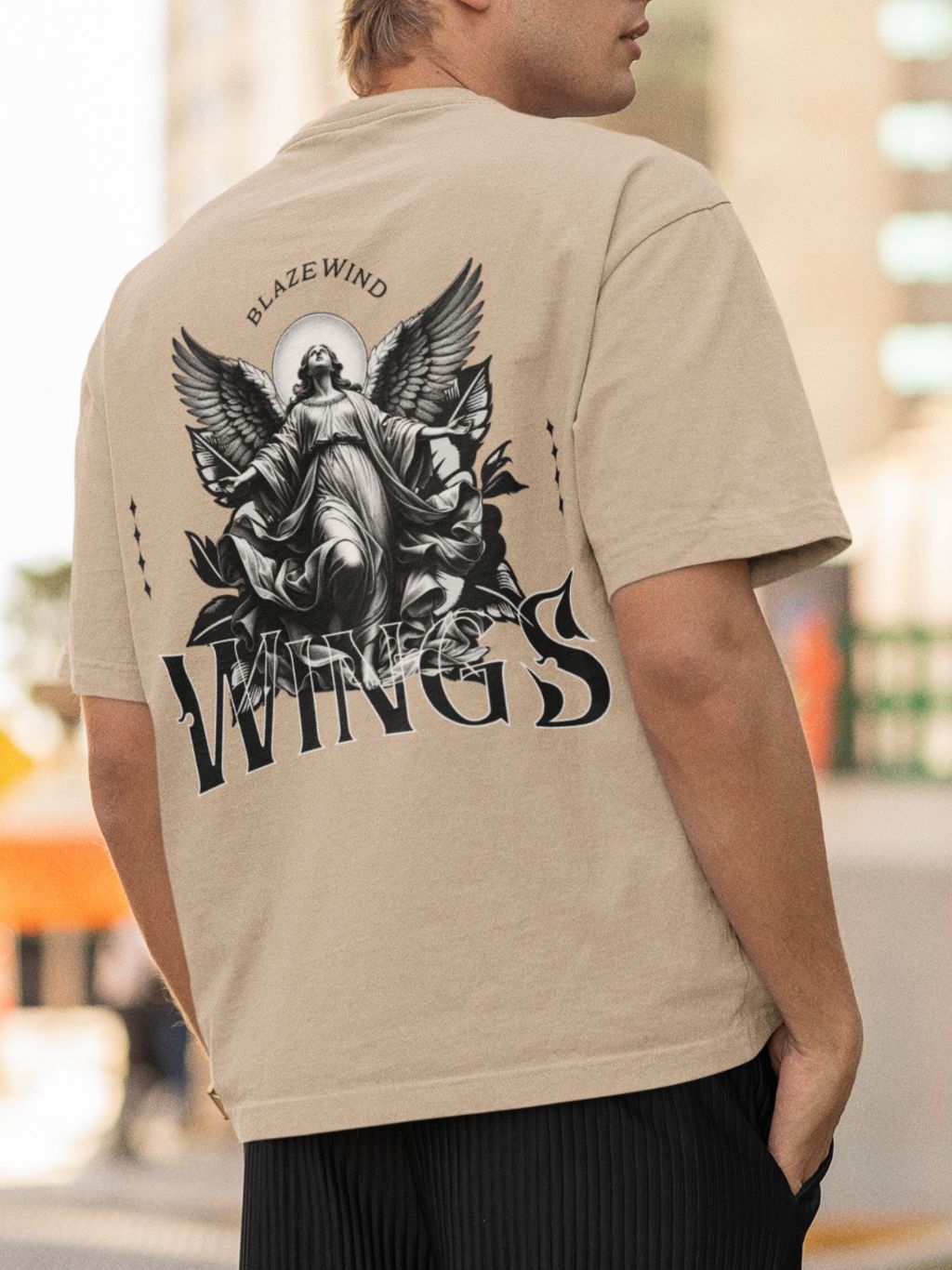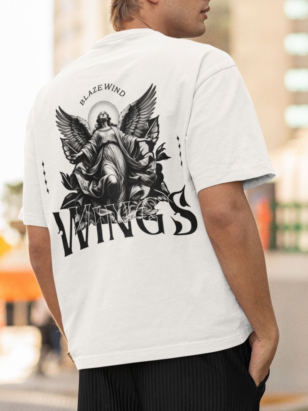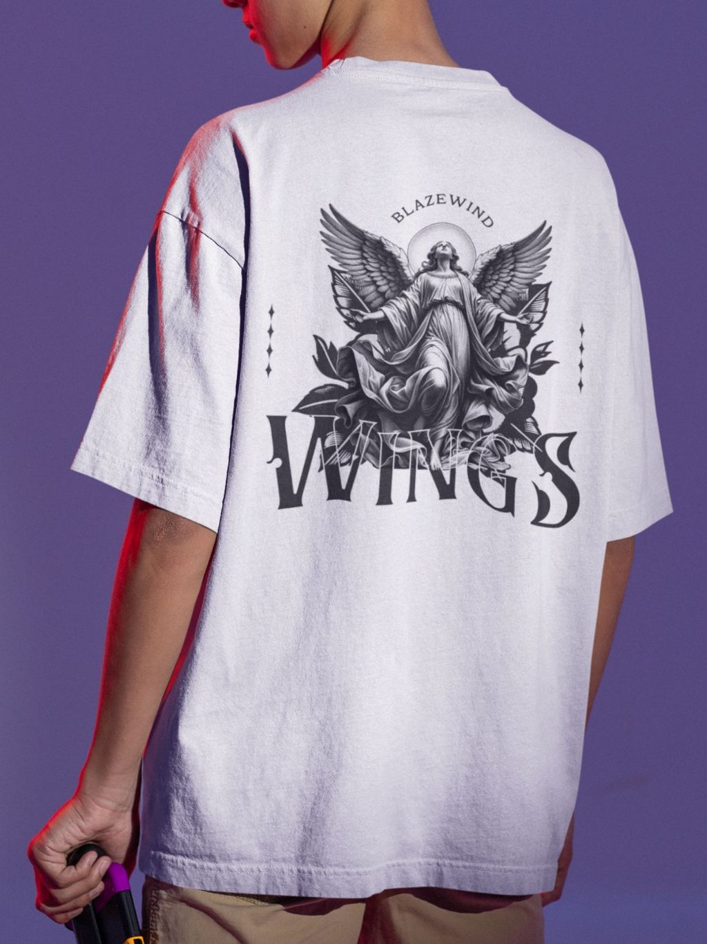 Camiseta Masculina Anjo Estampado Costas 100% algodão Camisa Wings Confortável