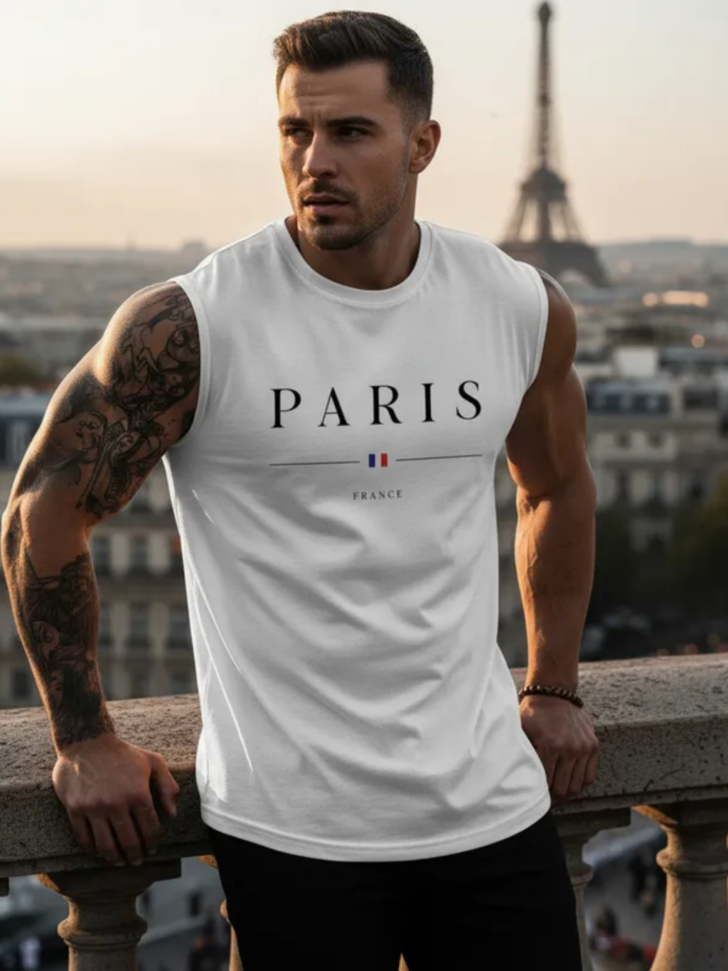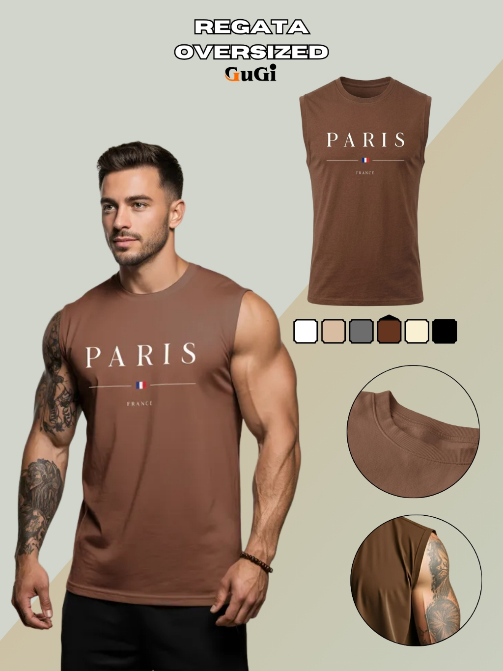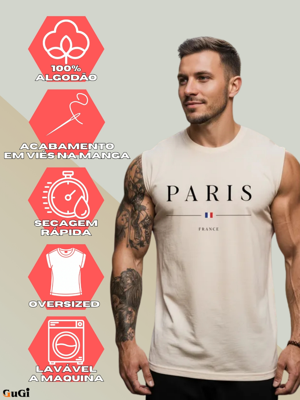 Regata Masculina Machão Muscle 100% Algodão Premium Estampa Paris GuGi Camiseta Cavada Confortável