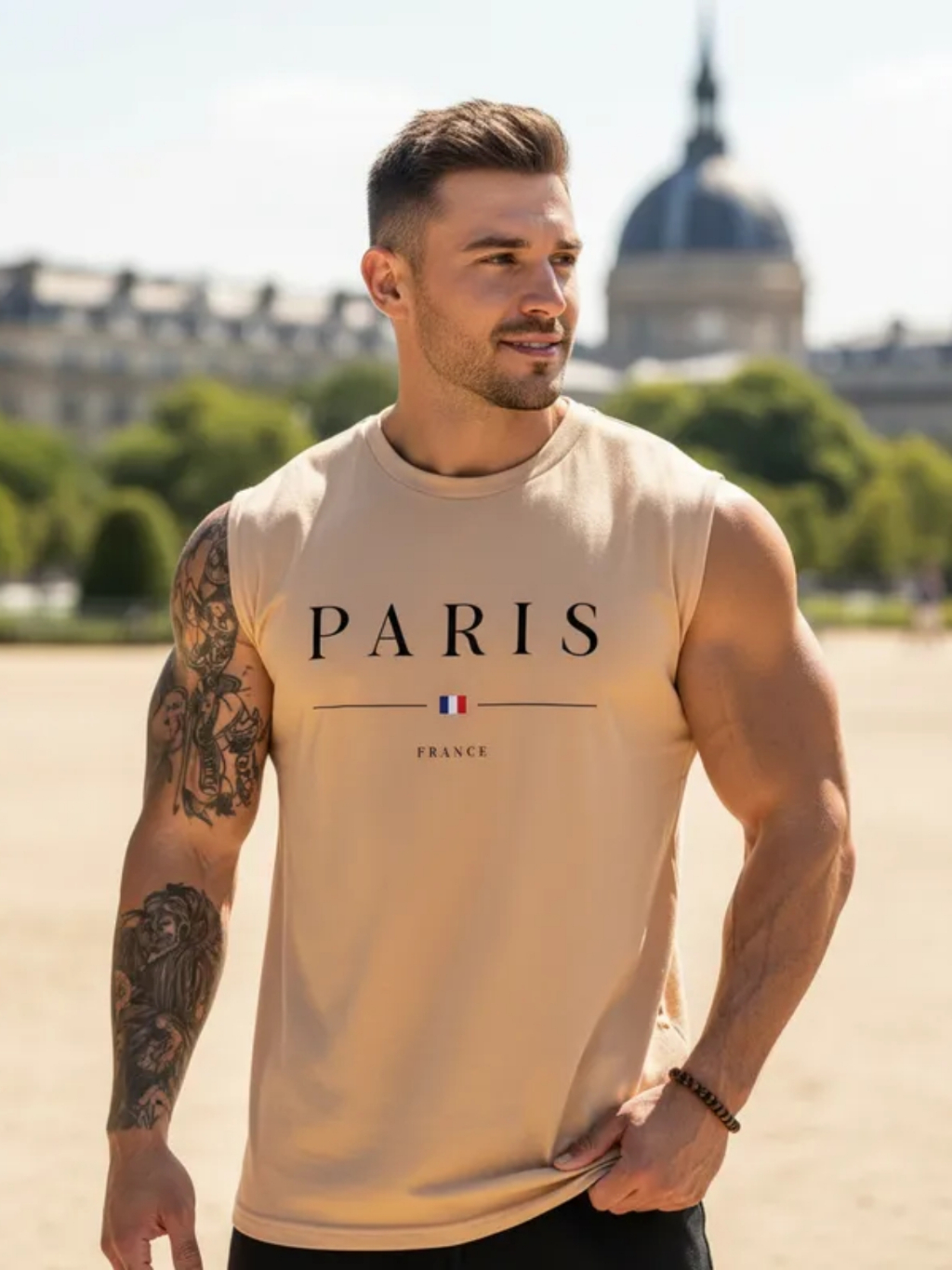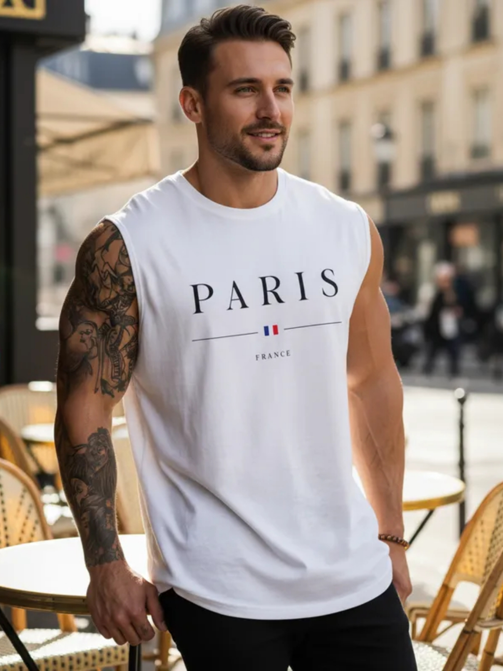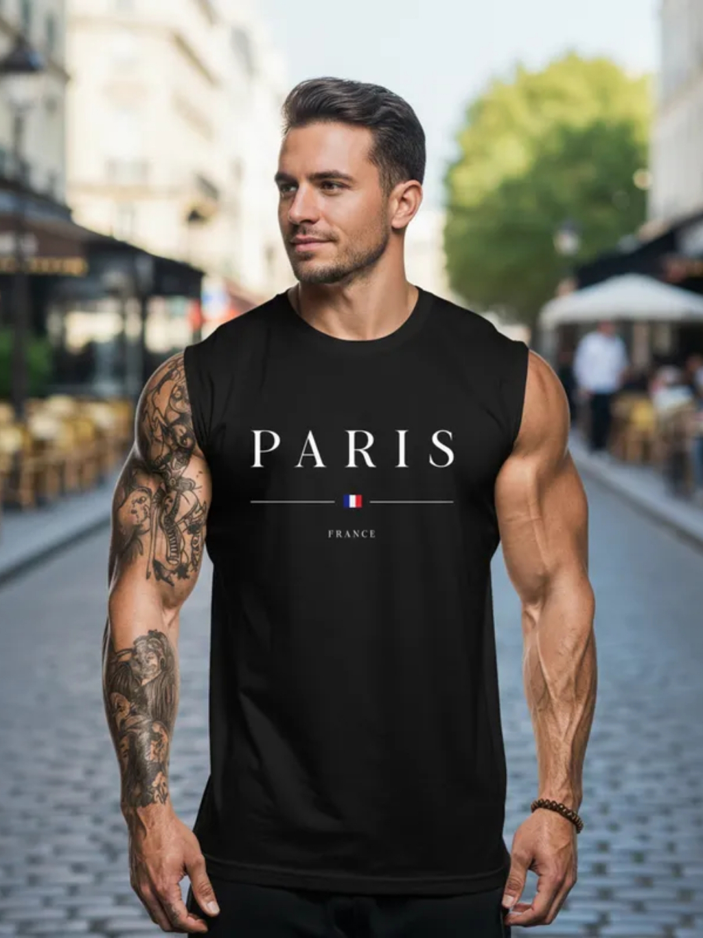 Regata Masculina Machão Muscle 100% Algodão Premium Estampa Paris GuGi Camiseta Cavada Confortável