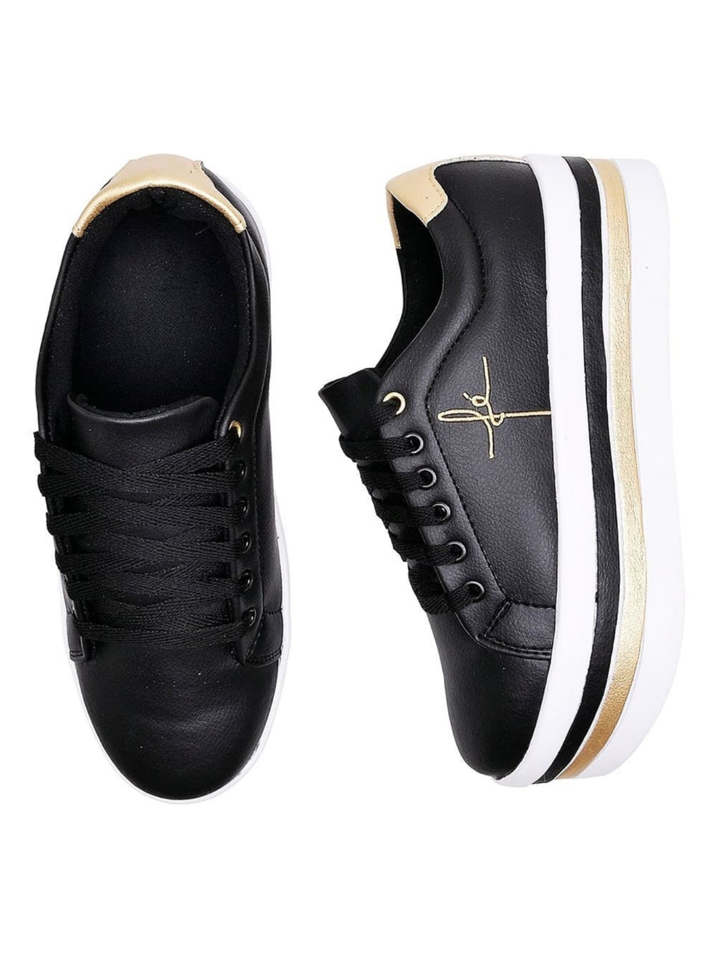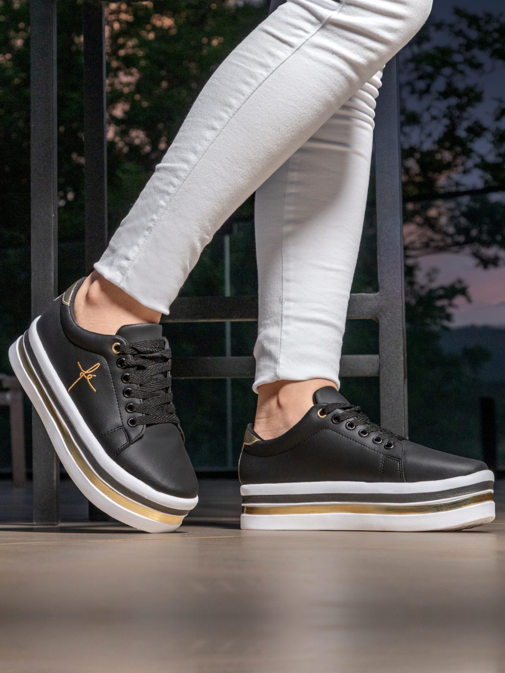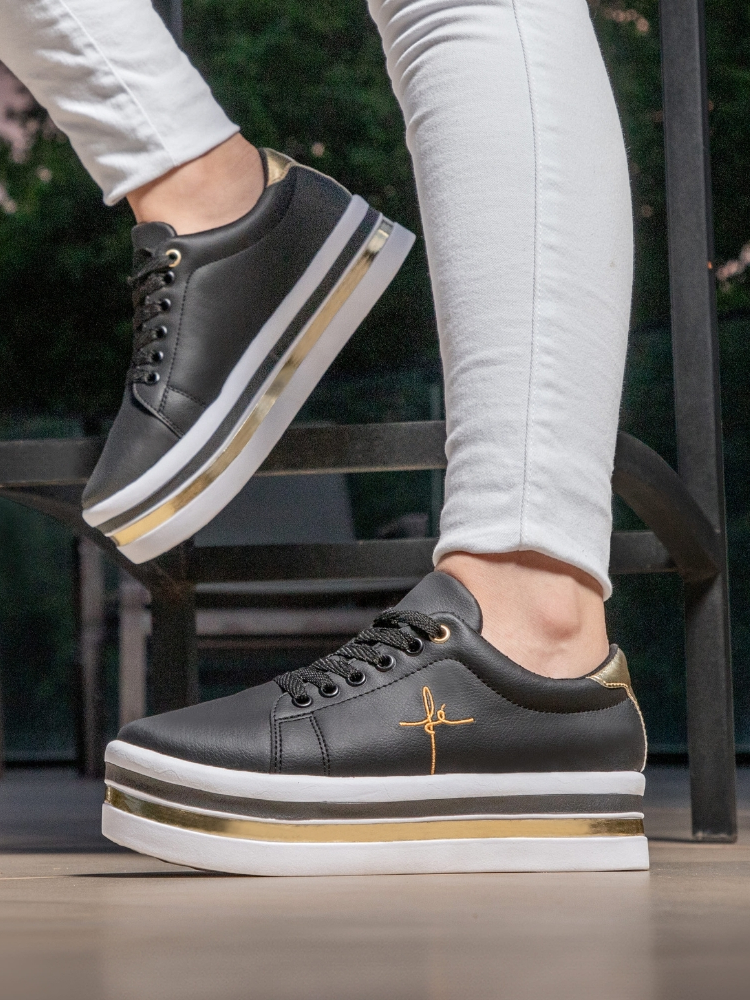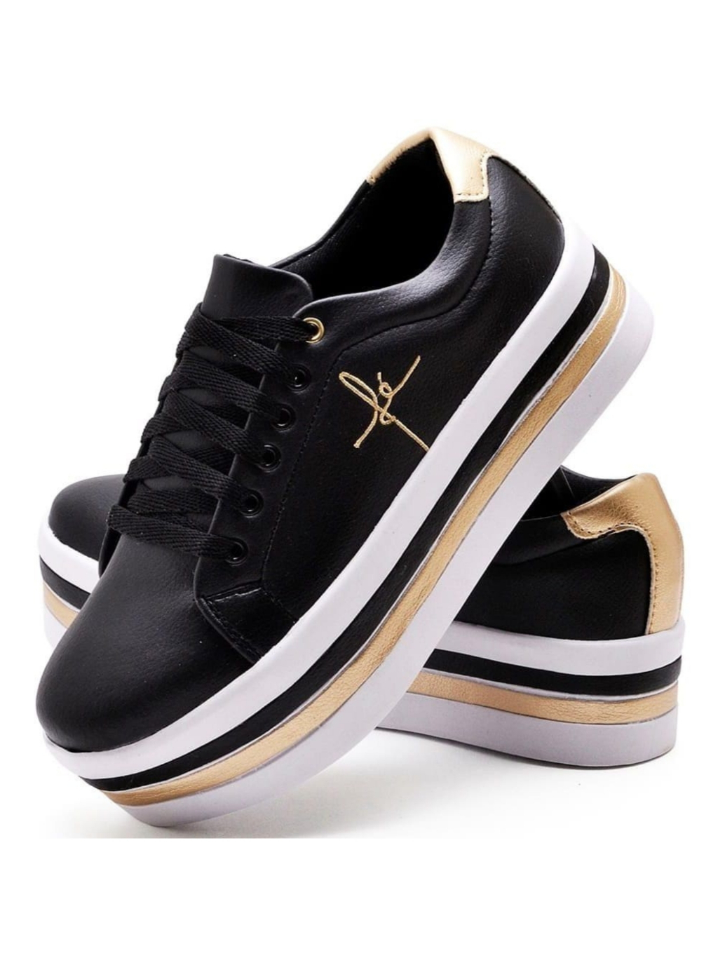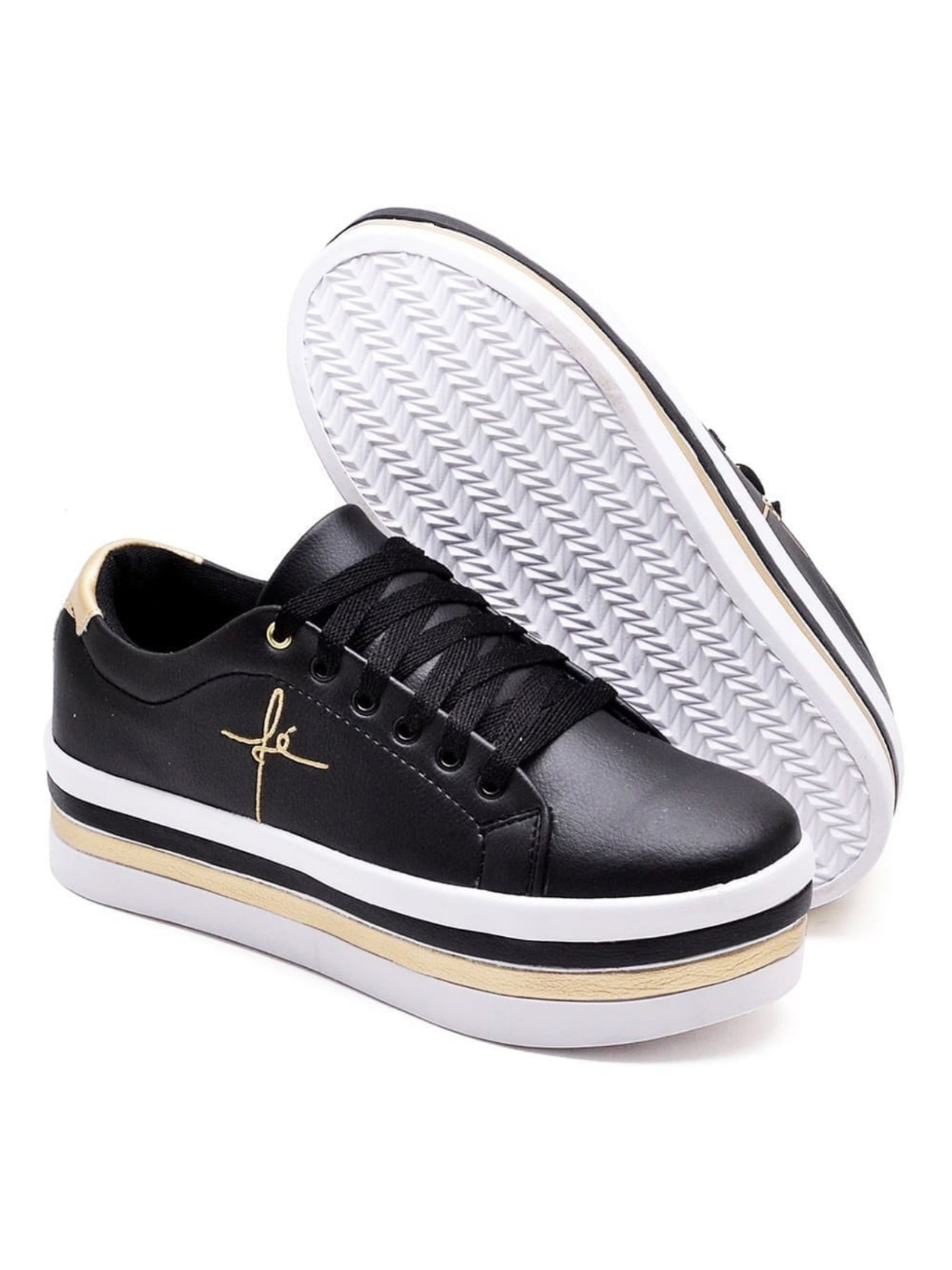 Tênis Feminino Bordado Fé Salto Plataforma Detalhes Anabela Preto