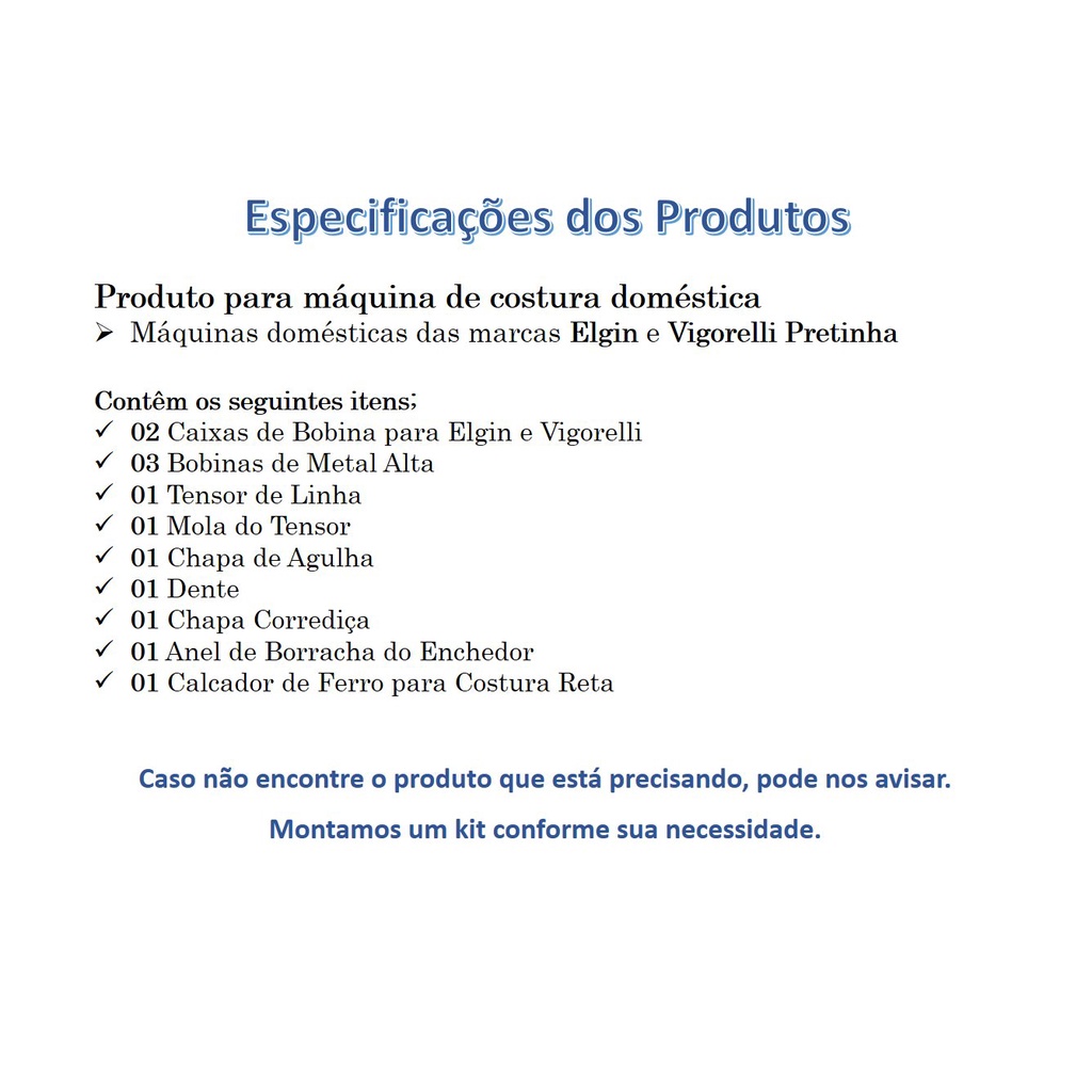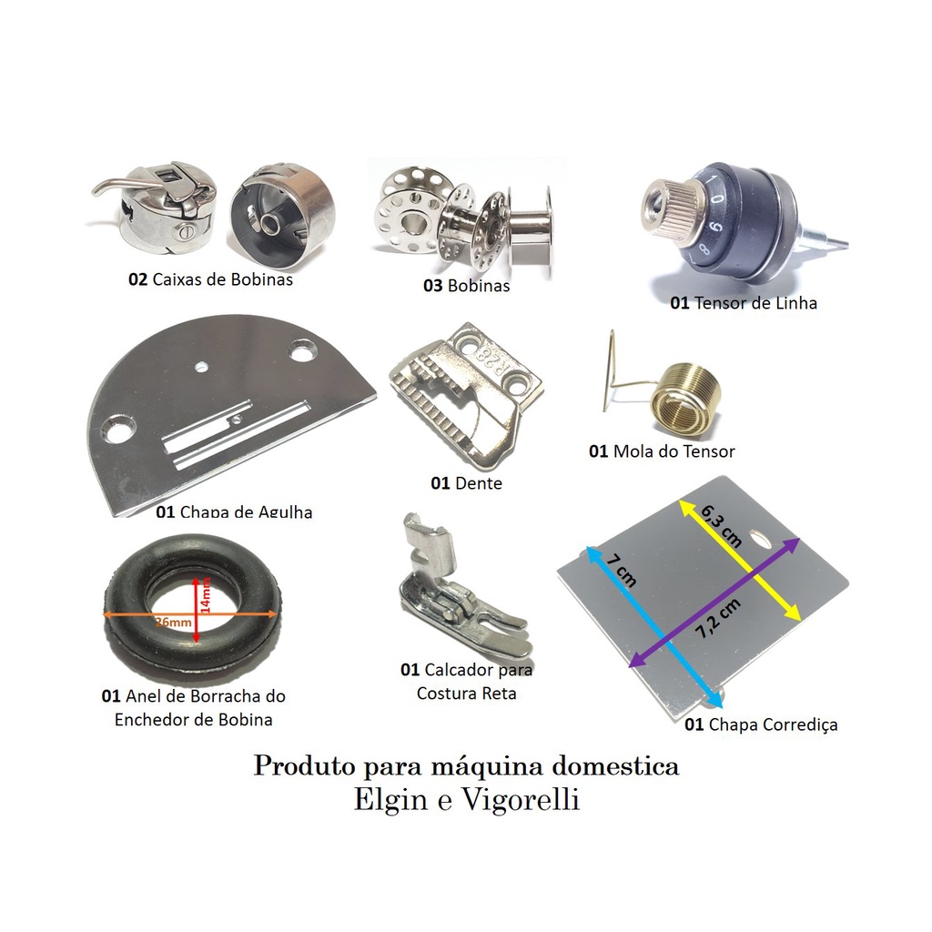 Kit Elgin Vigorelli Chapa Dente Tensor Bobina Caixa Calcador 12 Peças