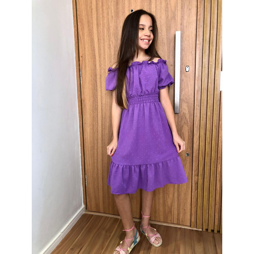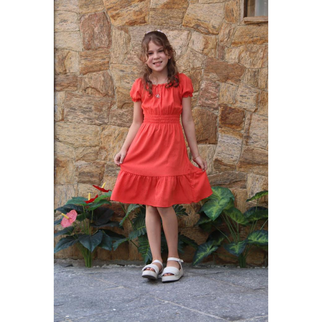 Vestido Infantil e Juvenil Ciganinha Liso De Manguinha final de ano Primavera