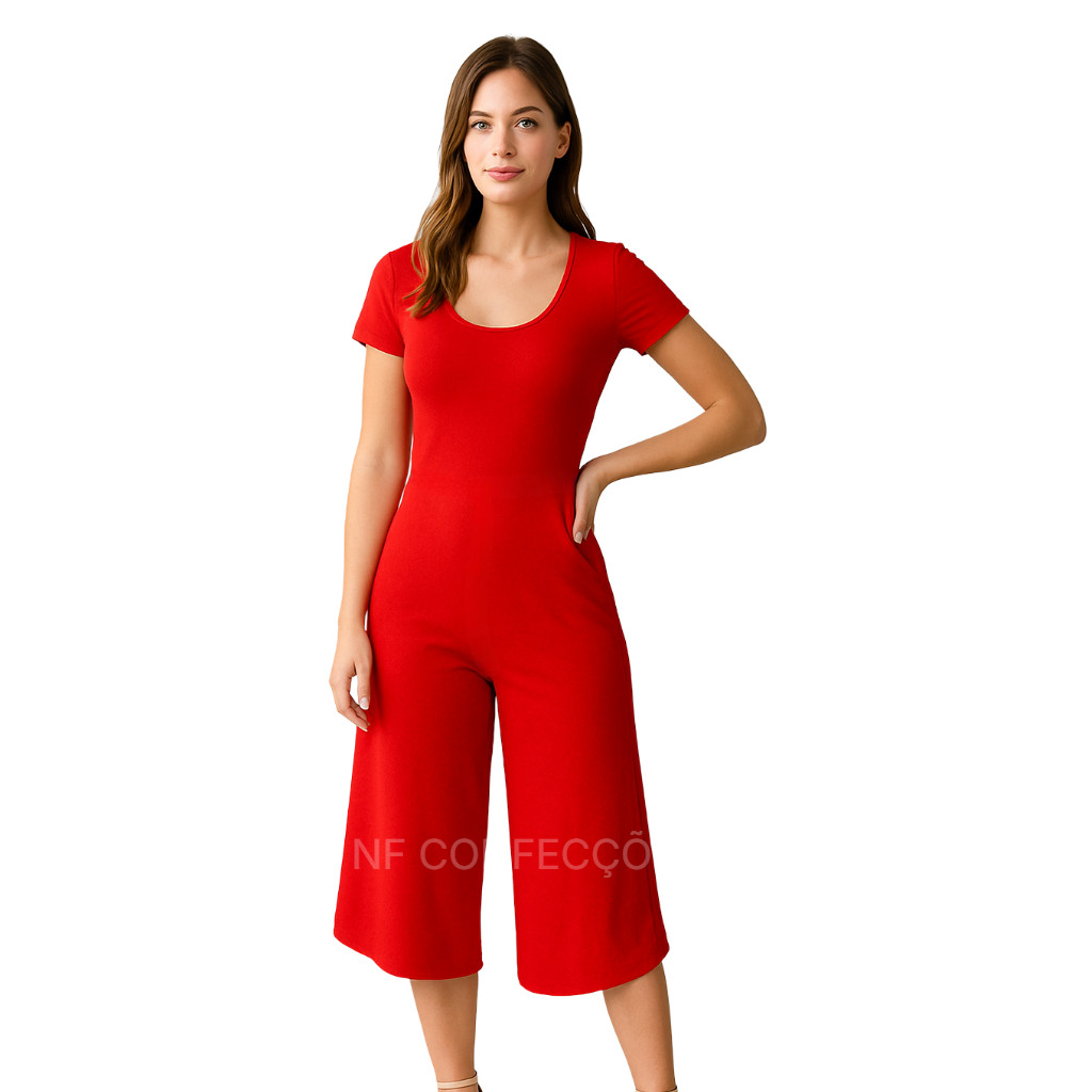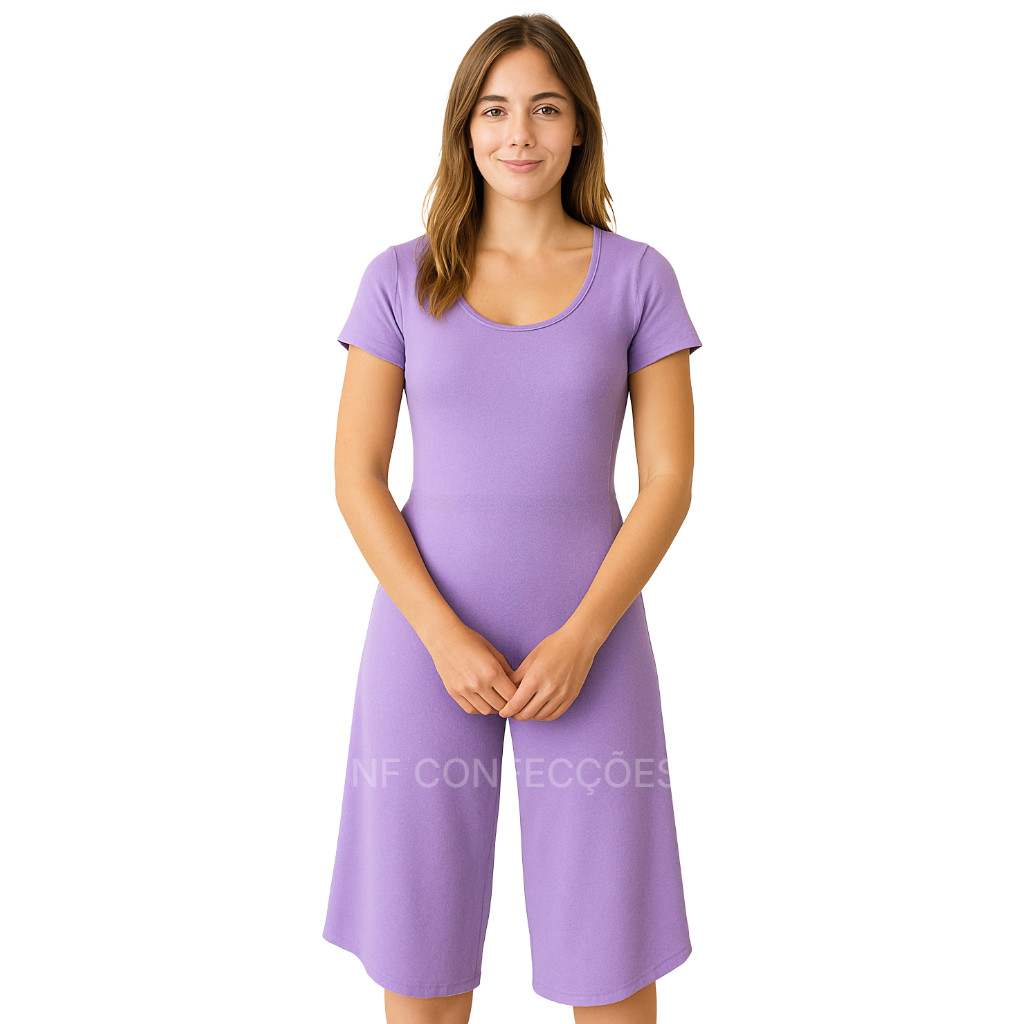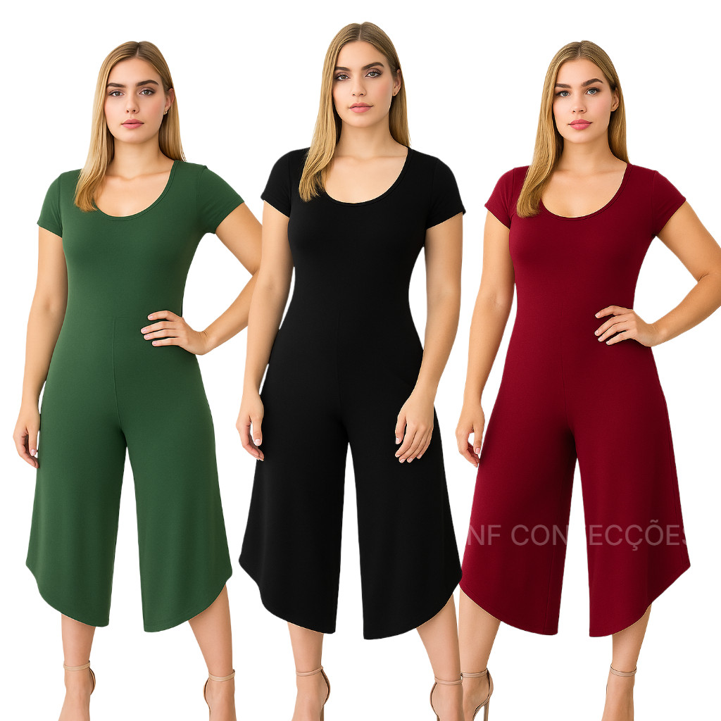 Macacão de manga Pantacourt Viscolycra pantacurt liso entrega rápida tamanho único NF