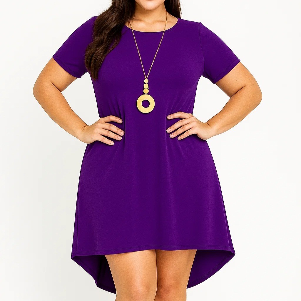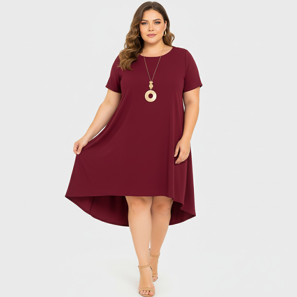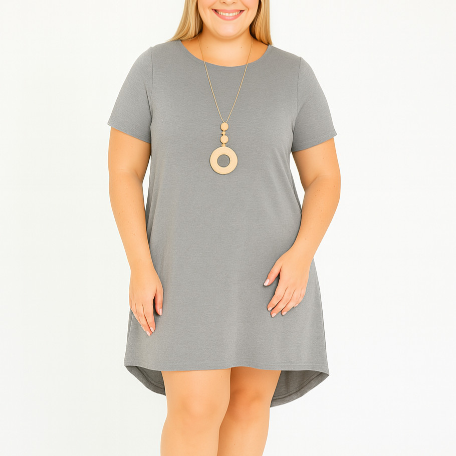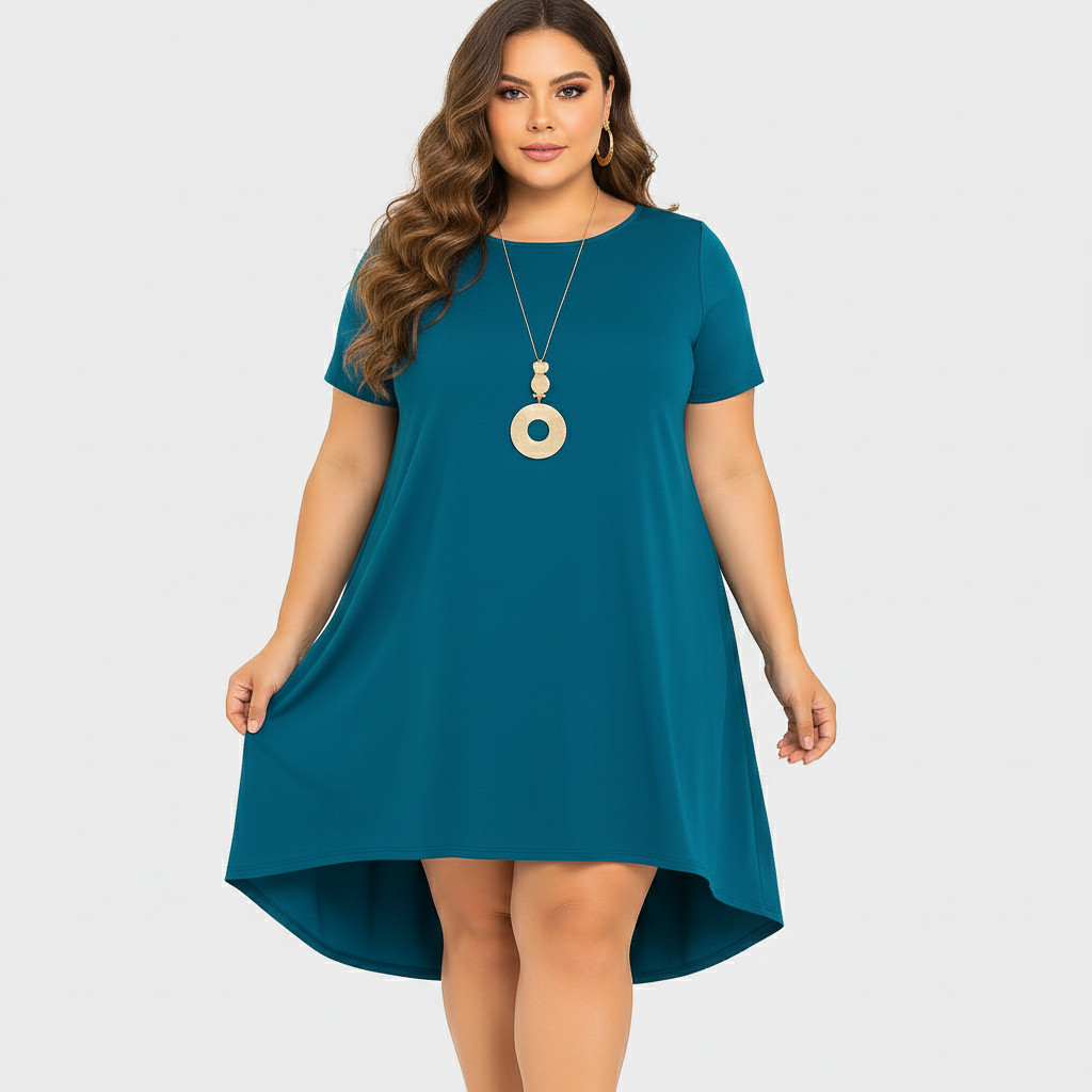 Vestido Mullet de Manga Curta Plus size Mid size NF Viscolycra Leve Levinho