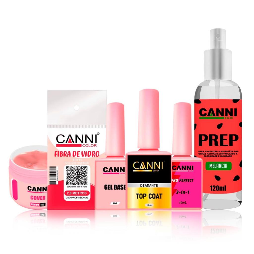 kit iniciante manicure fibra unhas gel canni color completo
