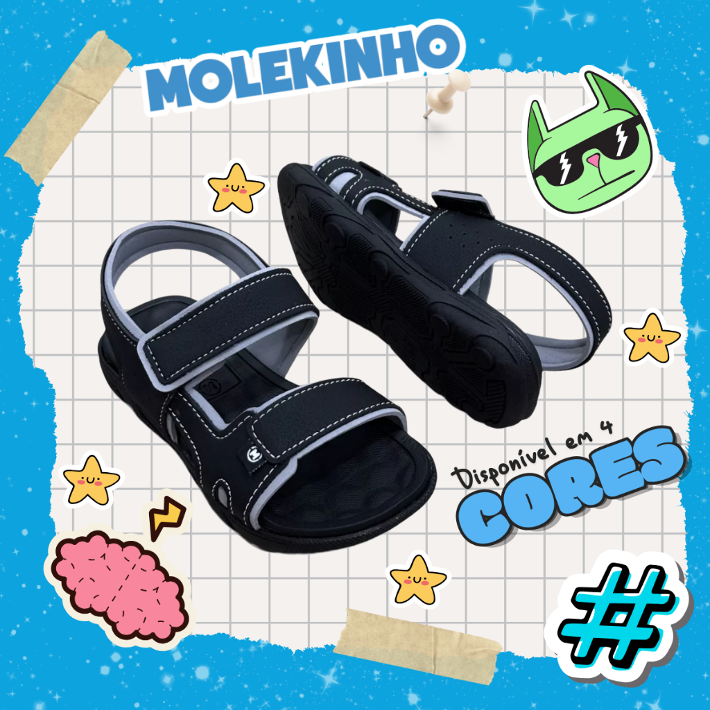 Sandália Papete Molekinho Infantil Menino Bebé Fecho Em Velcro Solado Antiderrapante Original