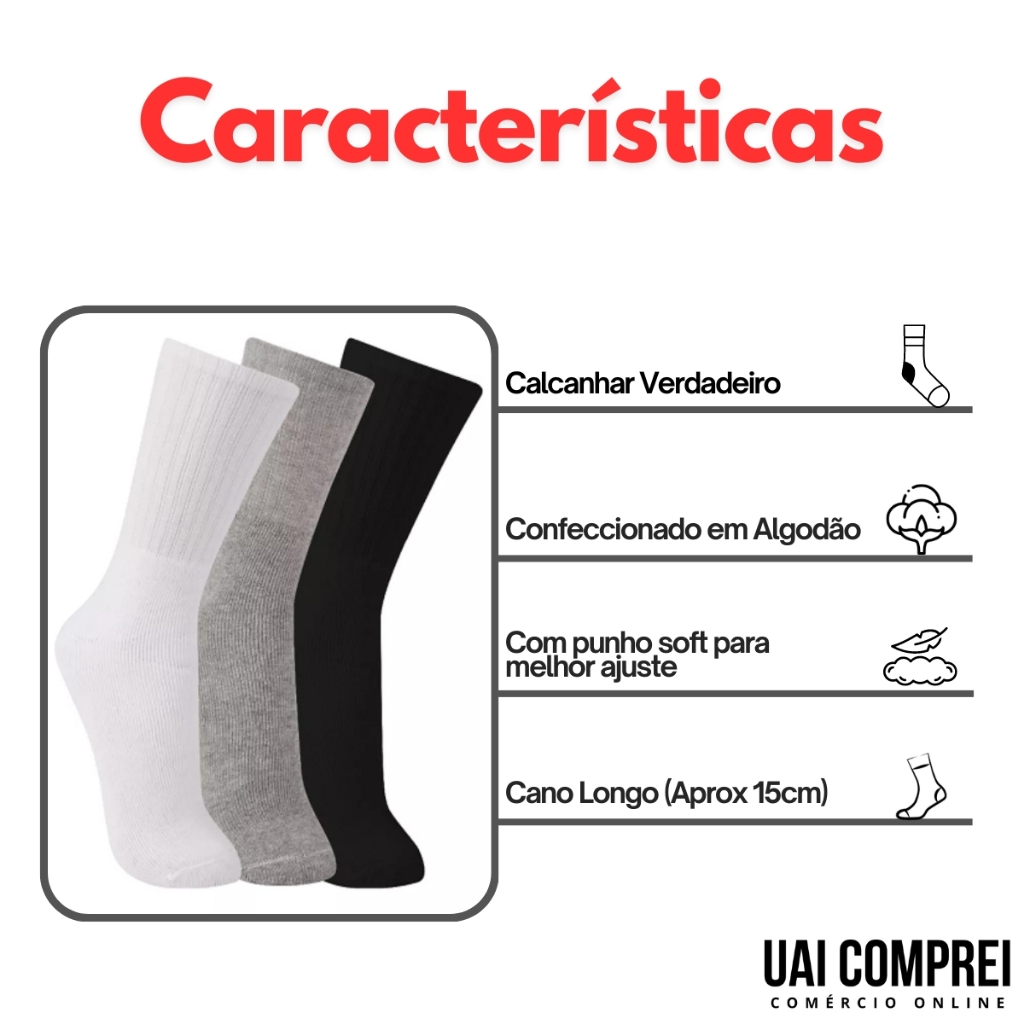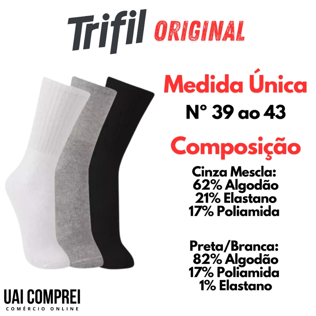 Kit Meia 3 Pares Cano Alto Esportiva Casual Algodao Trifil