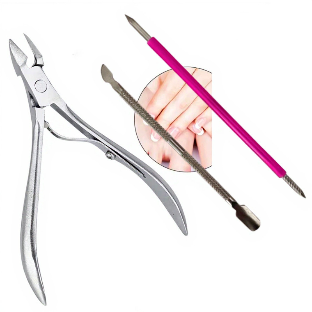 Kit 3 cutelaria profissional Alicate+espatula+Palito de inox. Unha, esmalte, gel, cetim, skin care