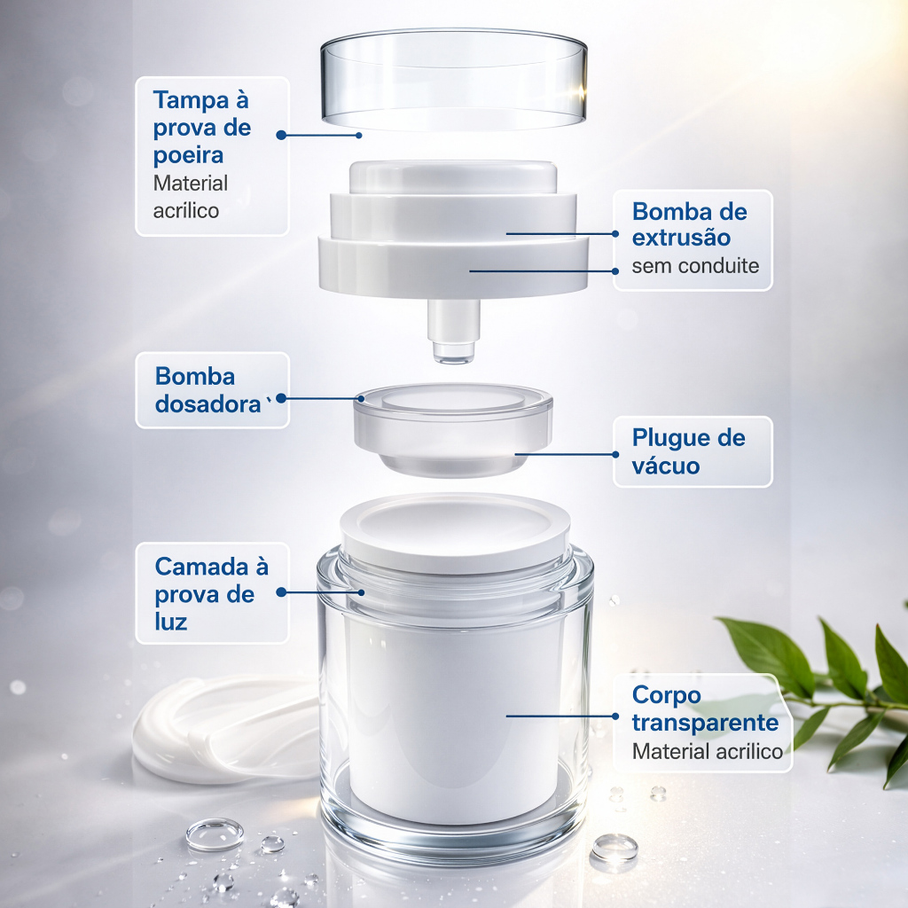 Dispenser Frasco Acrílico Airless 50ml Pump Creme Géis Loções Refil Portátil Viagem Embalagem Beleza
