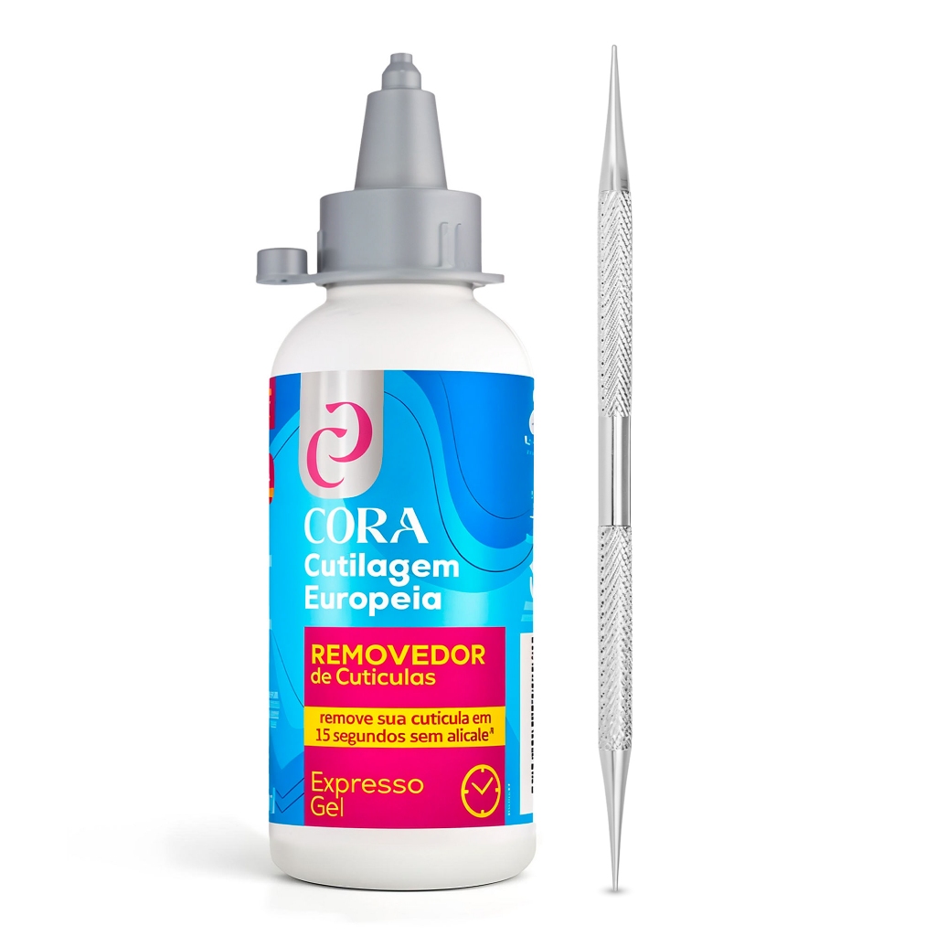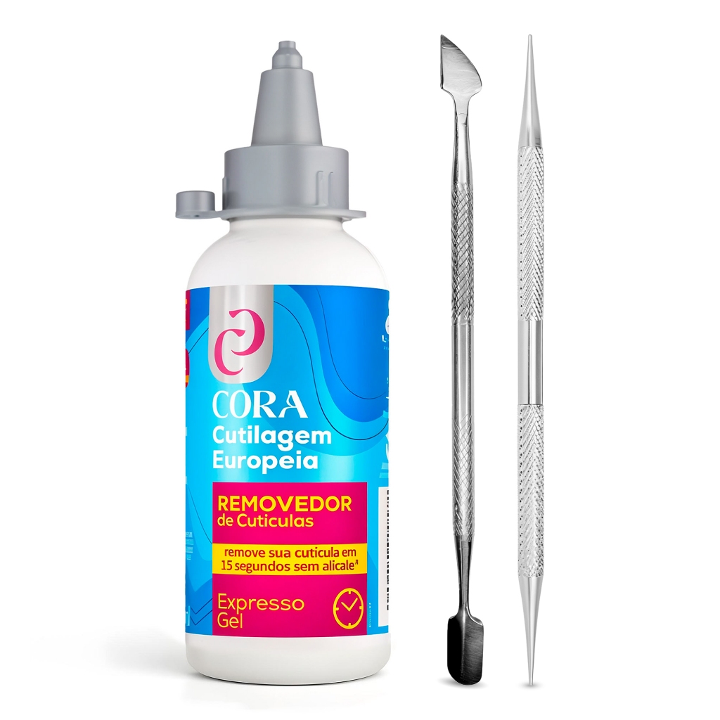 Kit Removedor De Cutícula Expresso 15 seg Gel Cora + Espátula Dupla + Palito Ponta Dupla Bella Inox