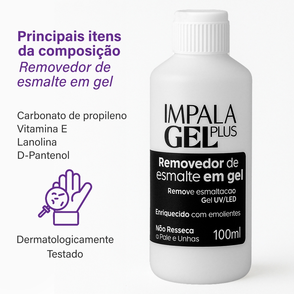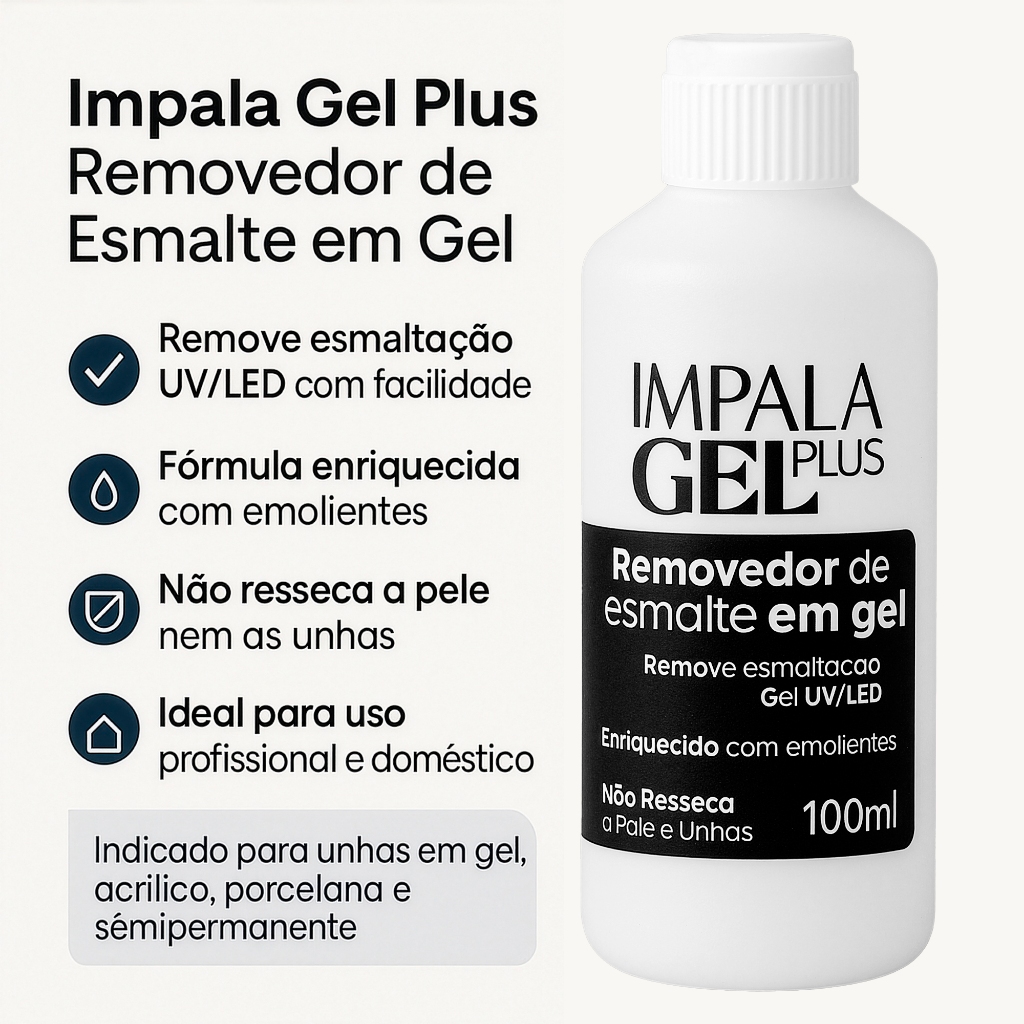 Kit Manicure Impala Magic Remover Removedor Esmalte Gel 100ml UV LED Aço Inox Uso Profissional