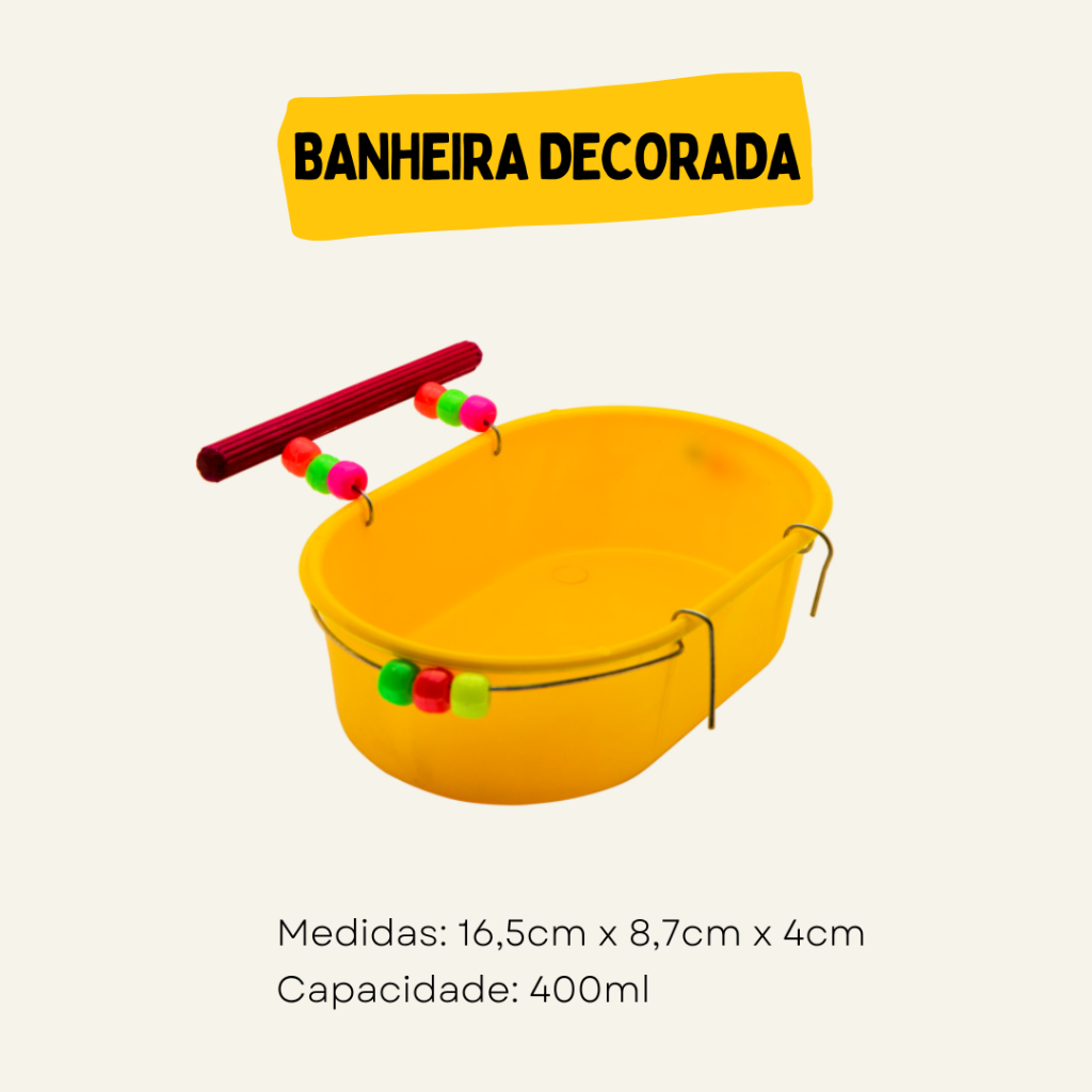 Brinquedos Para Calopsitas Agapornis Periquitos Banheira Decorada e Espelho Multiplay
