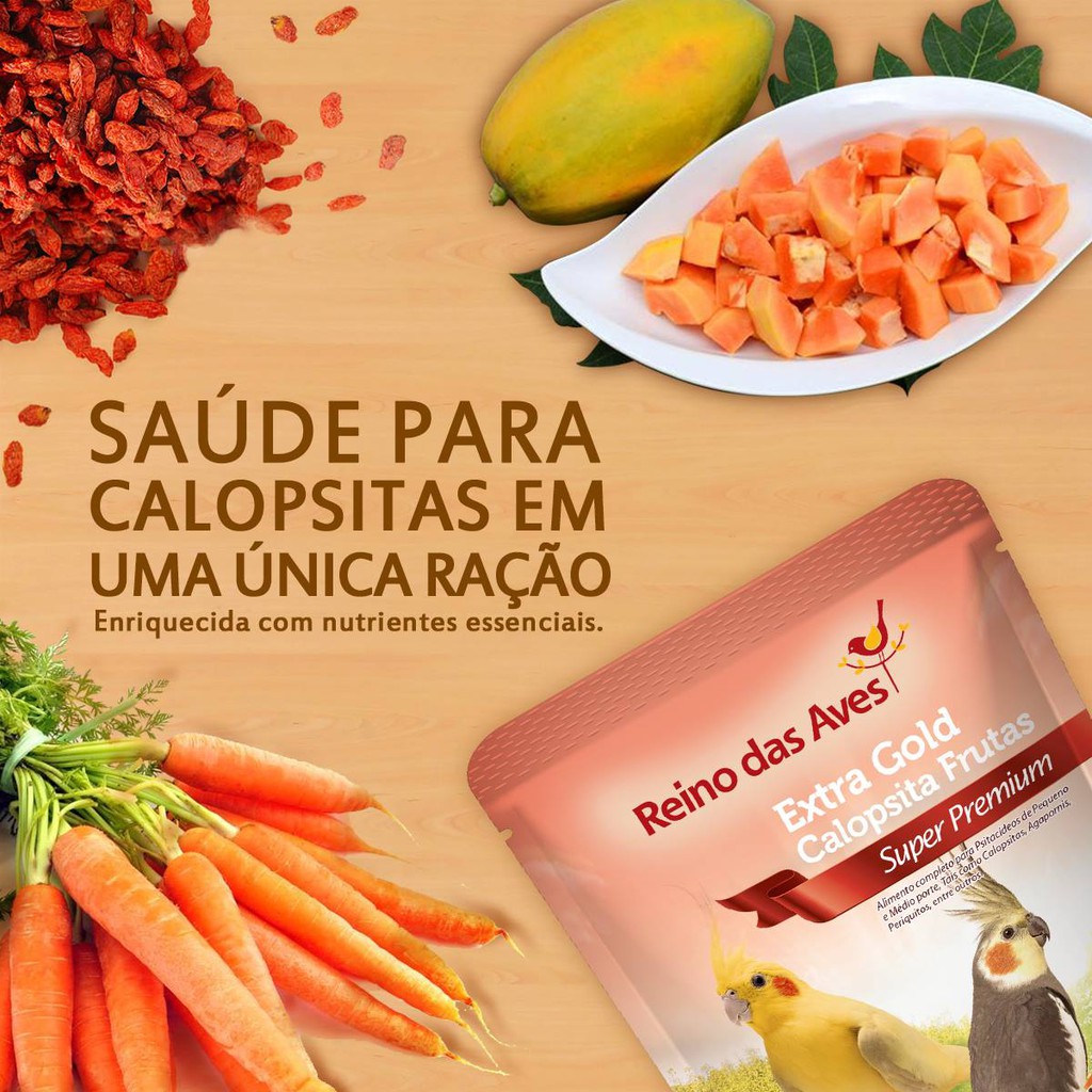 Ração Extra Gold Calopsita Frutas 400g - Reino das Aves