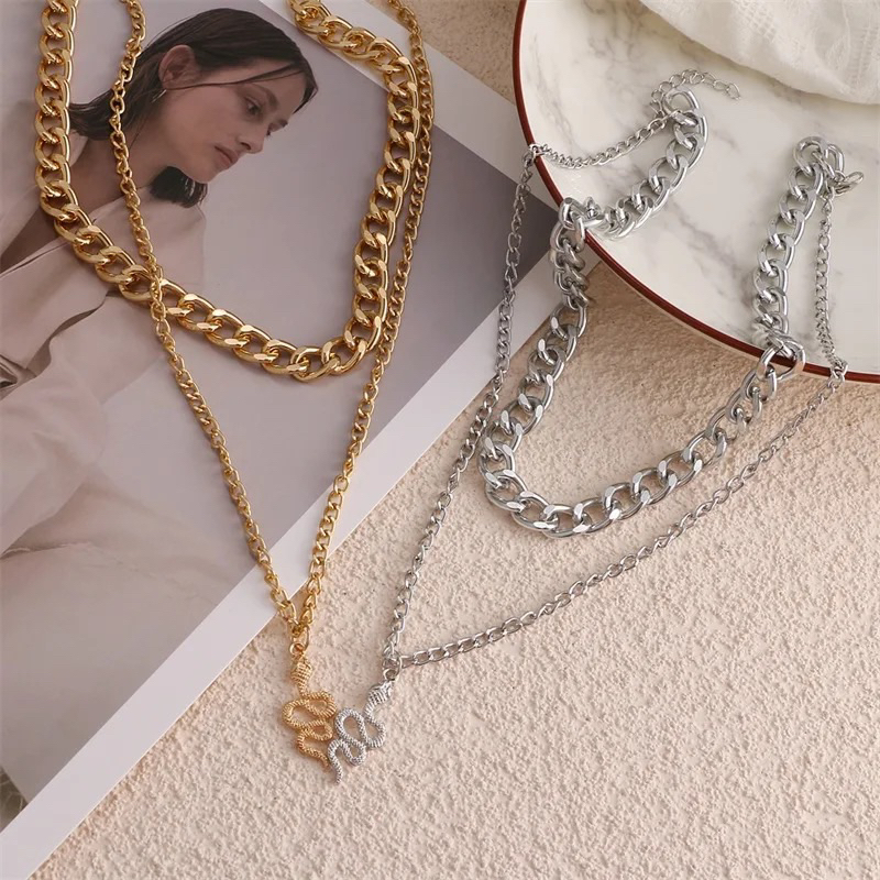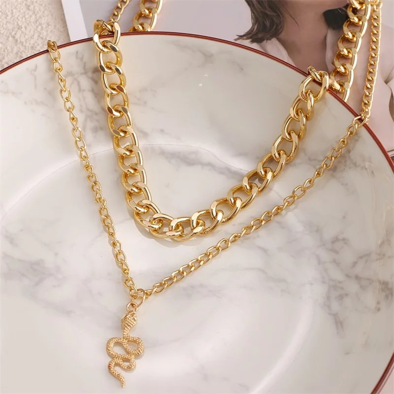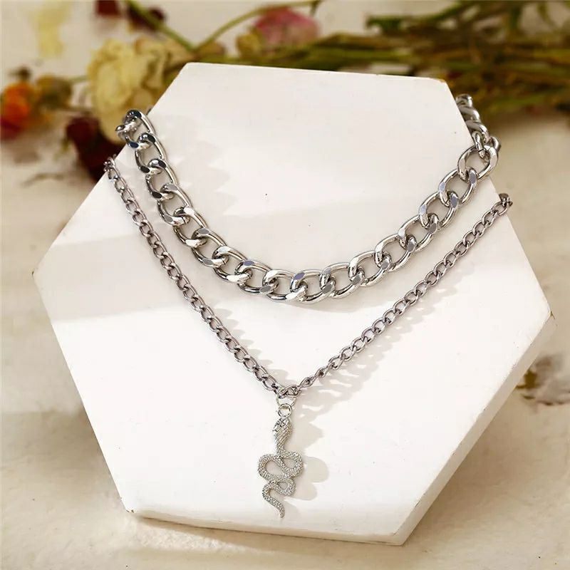Colar unissex corrente cubana pingente de cobra aesthetic