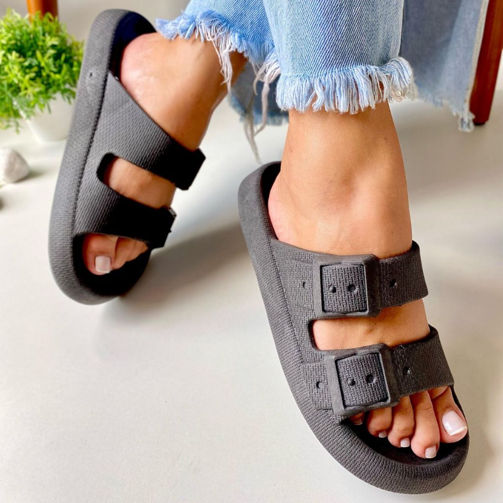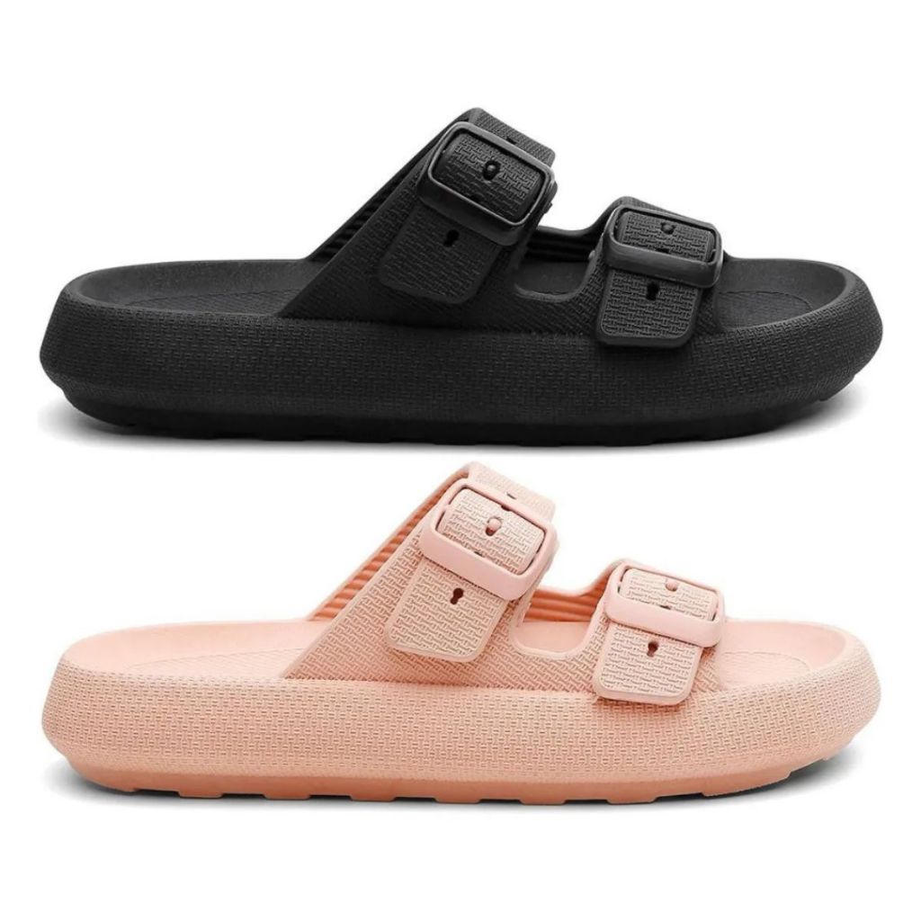 Kit 2 Par Sandália Birken Detalhe Fivela Chinelo Nuvem Ortopédica Confortável Papete Slide