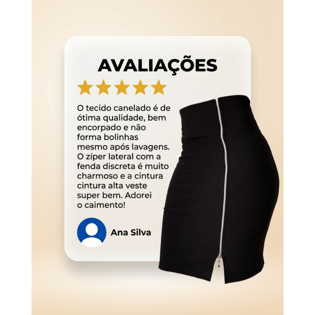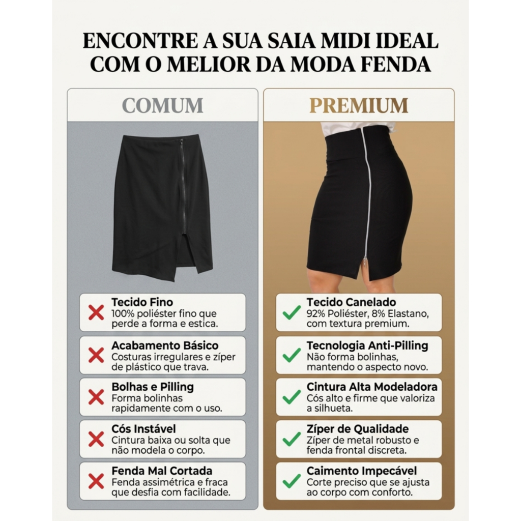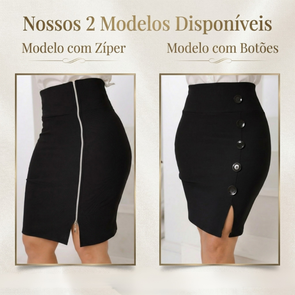 Saia Midi Feminina Cintura Alta Fenda Zíper Botões Evangélica Social Canelado Elegante Confortável