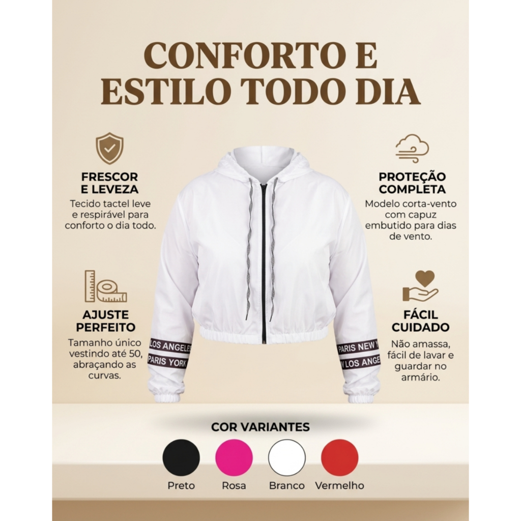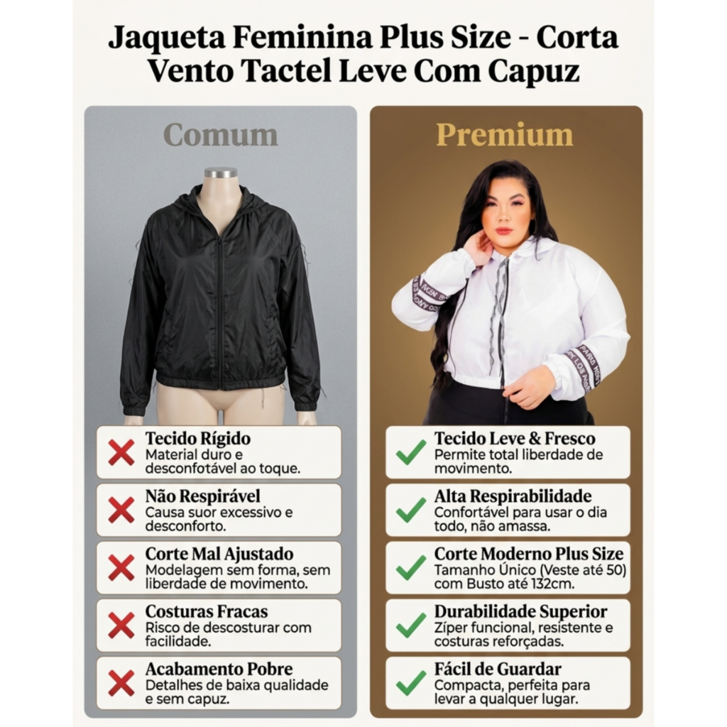 Jaqueta Feminina Plus Size Corta Vento Tactel Leve Com Capuz Corrida Caminhada Inverno Elegante