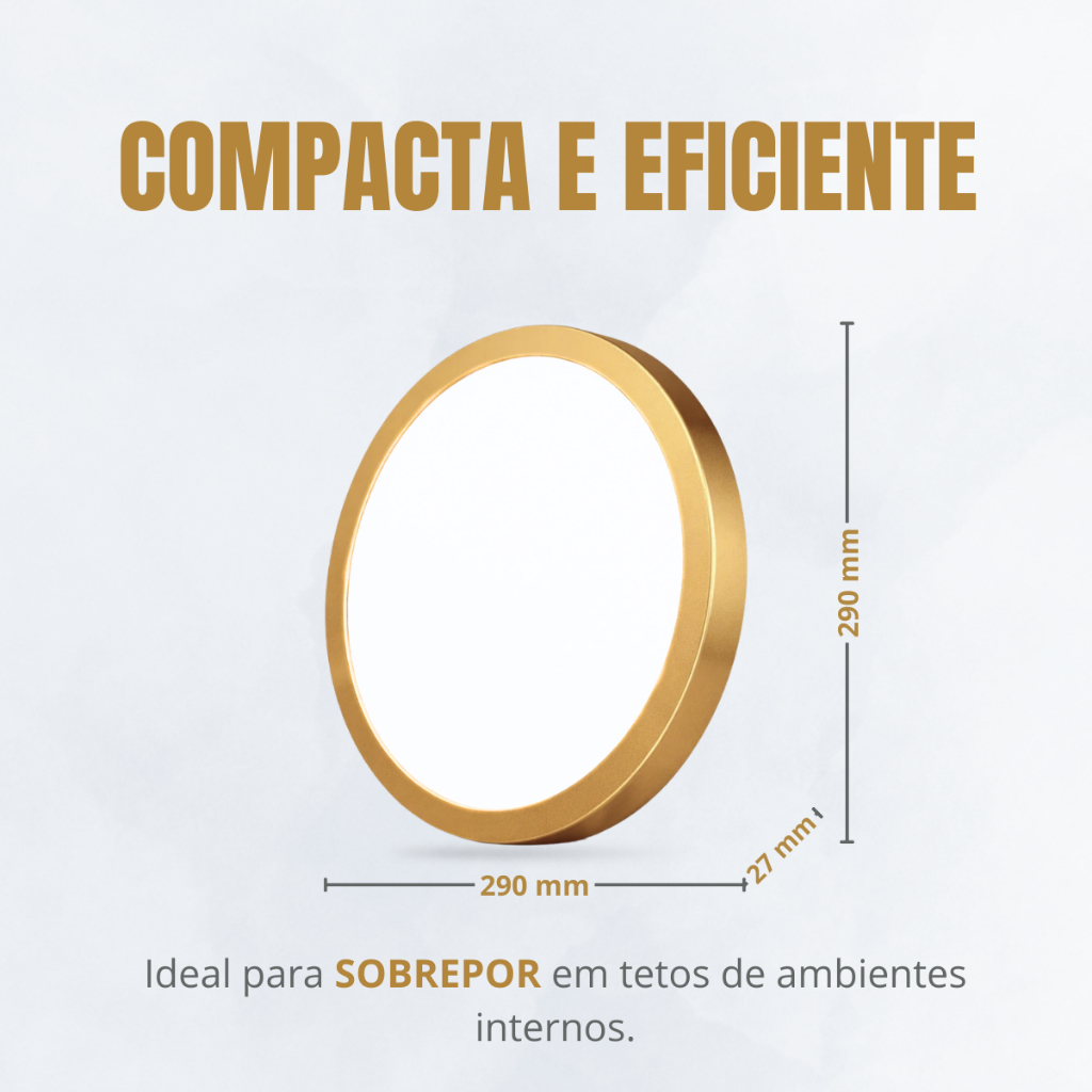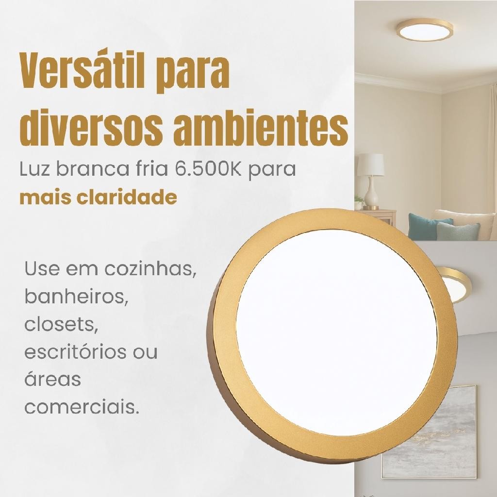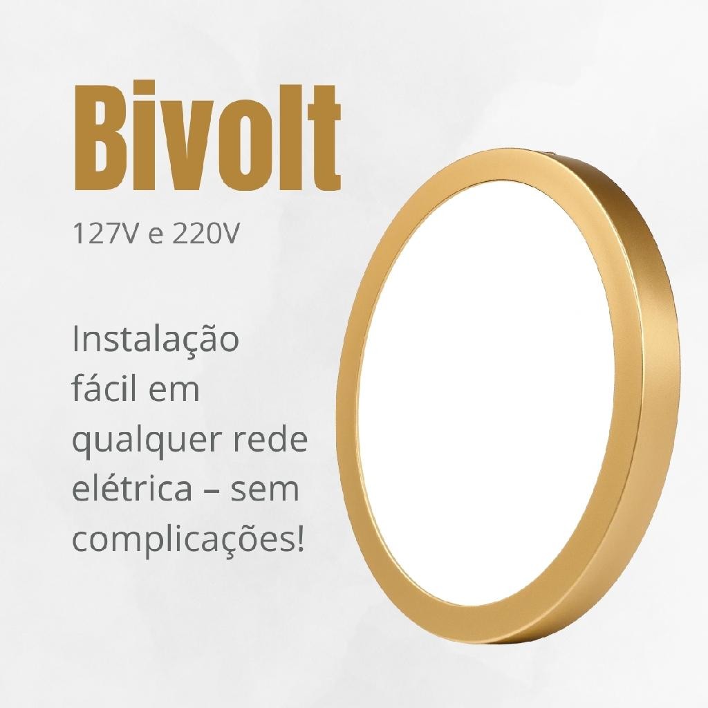 Luminária Painel Sobrepor Redonda Branco Frio 6500k Dourada