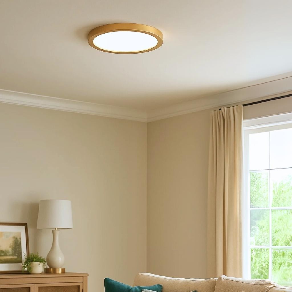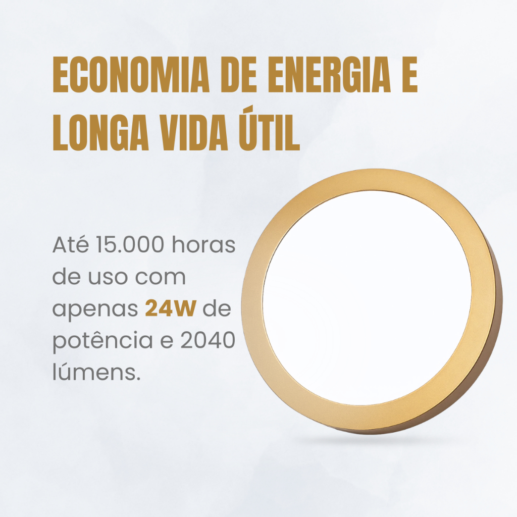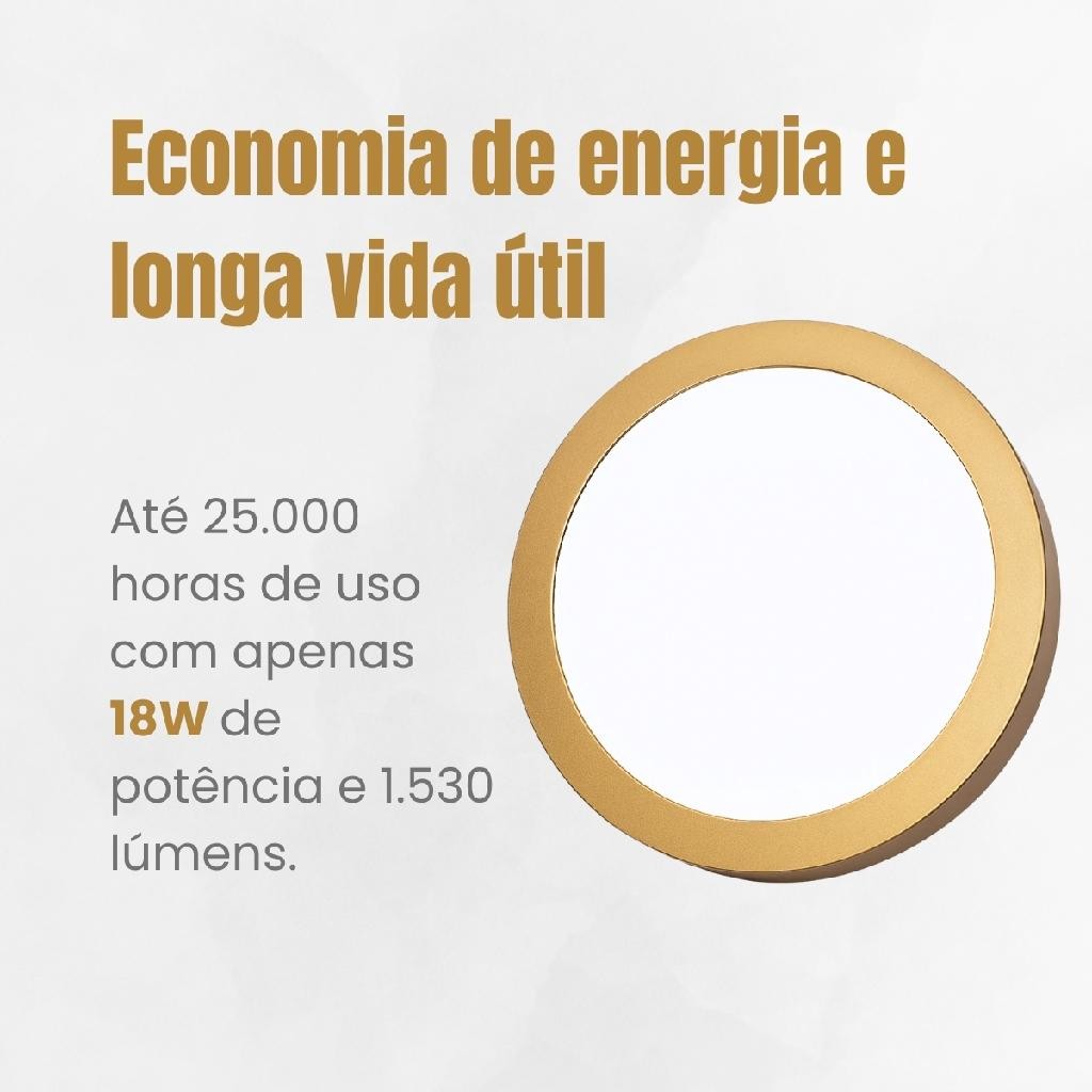 Luminária Painel Sobrepor Redonda Branco Frio 6500k Dourada