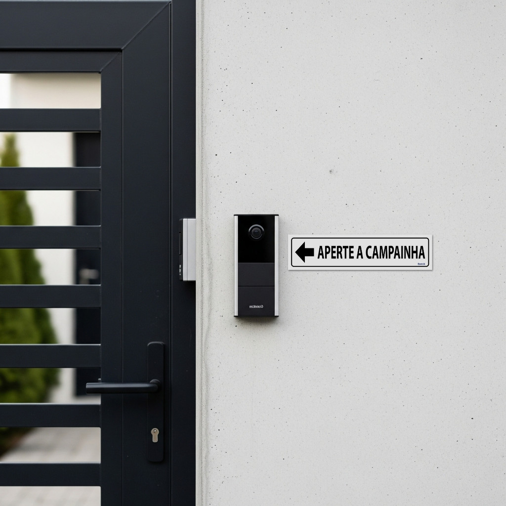 Placa De Sinalização Aperte A Campainha Á Esquerda 30x7 Ecom IA - B-703 F9e