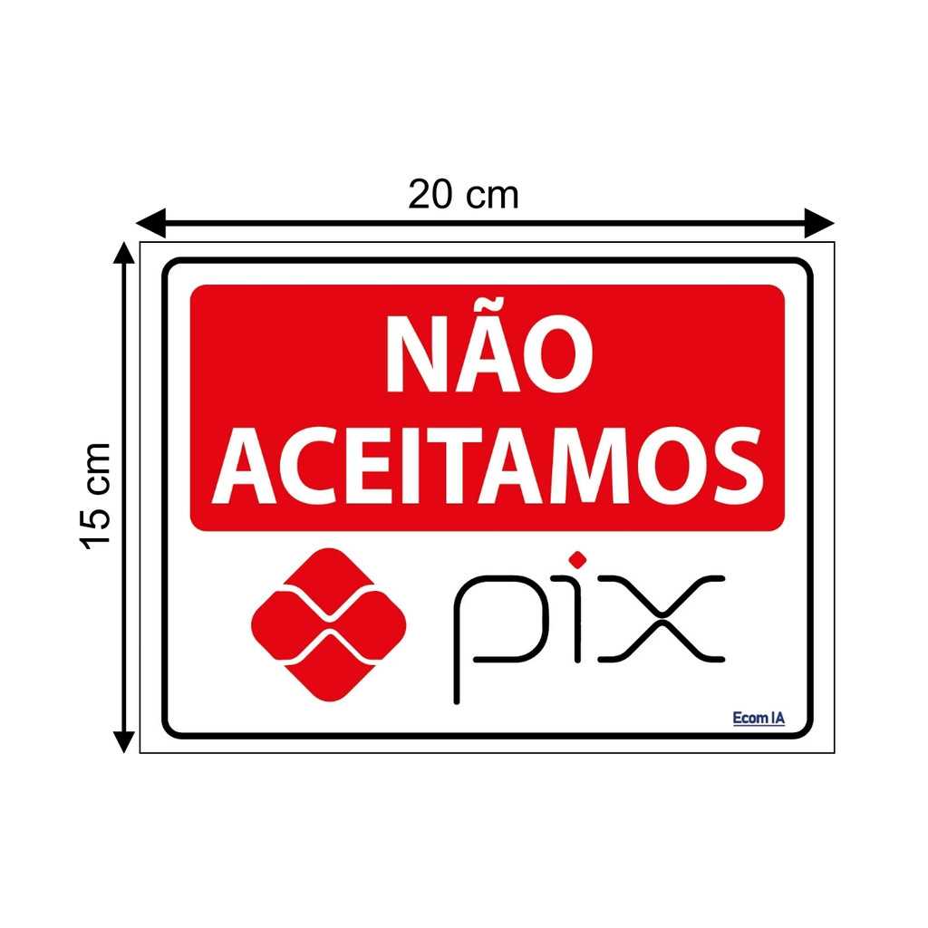 Placa De Sinalização Não Aceitamos Pix 20x15 Ecom IA - P-32/4 F9e