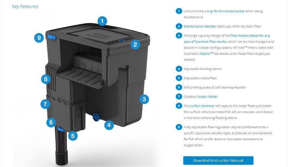 SEACHEM FILTRO TIDAL 110 2000L/H HANGON P/ ATÉ 400L 220V - UN