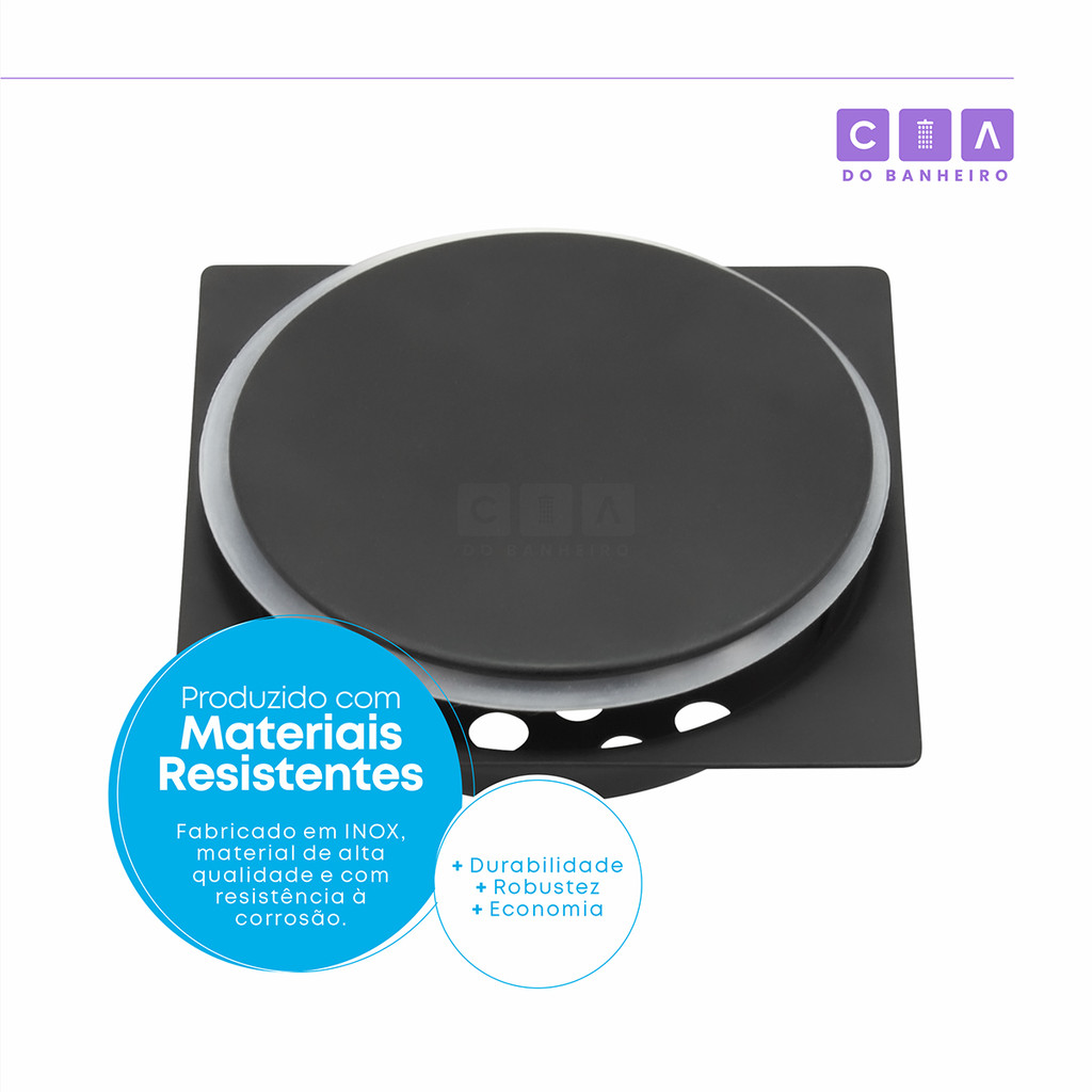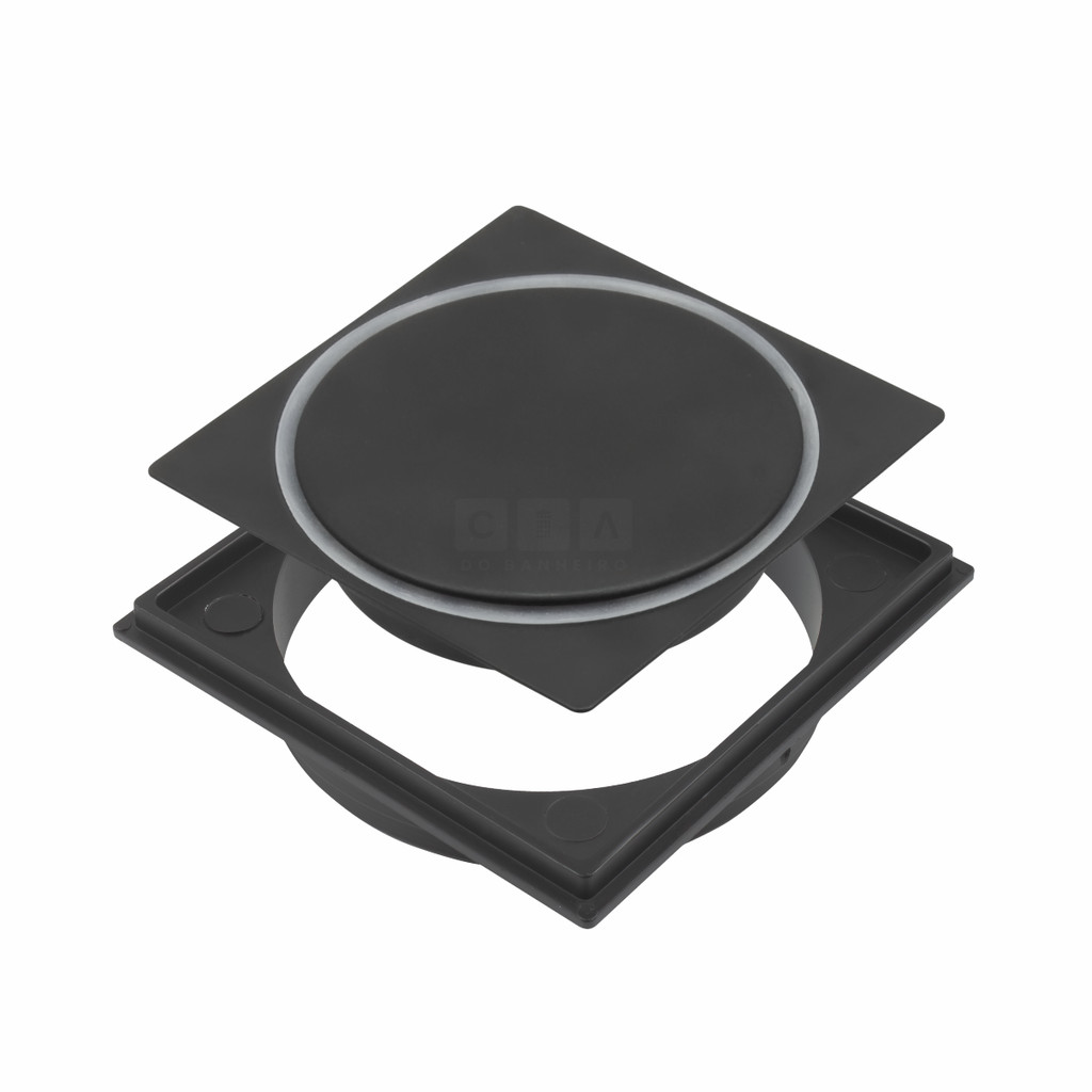 Ralo Click 10x10 Com Porta Grelhas Preto Fosco P/ Banheiro