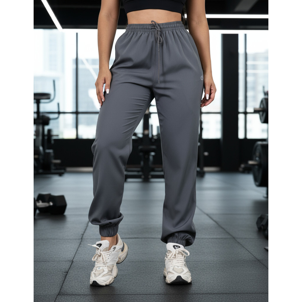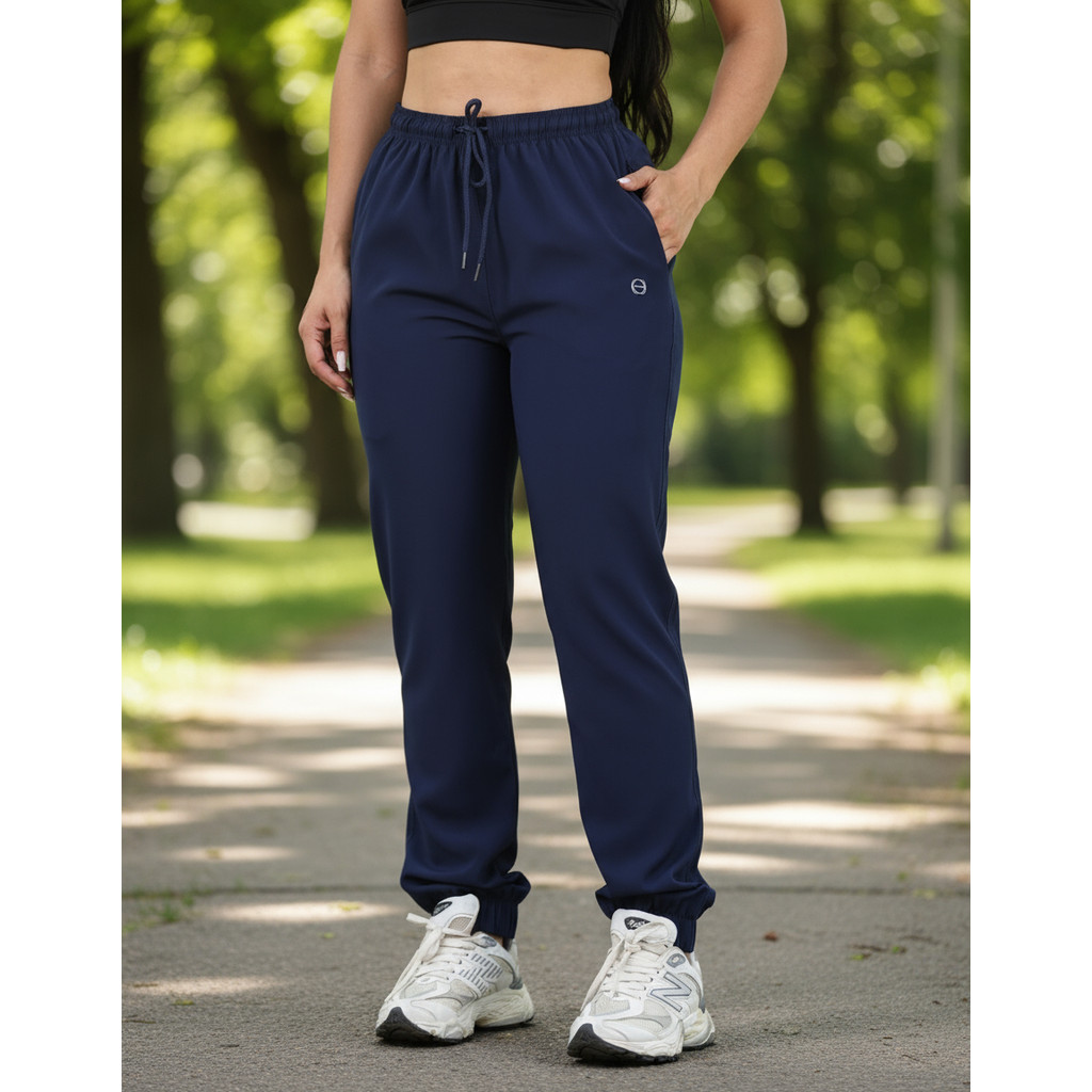Calça Feminina Jogger Em Tactel Com Elastano Bolsos E Cordão