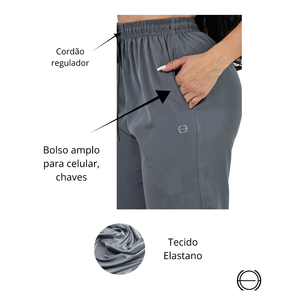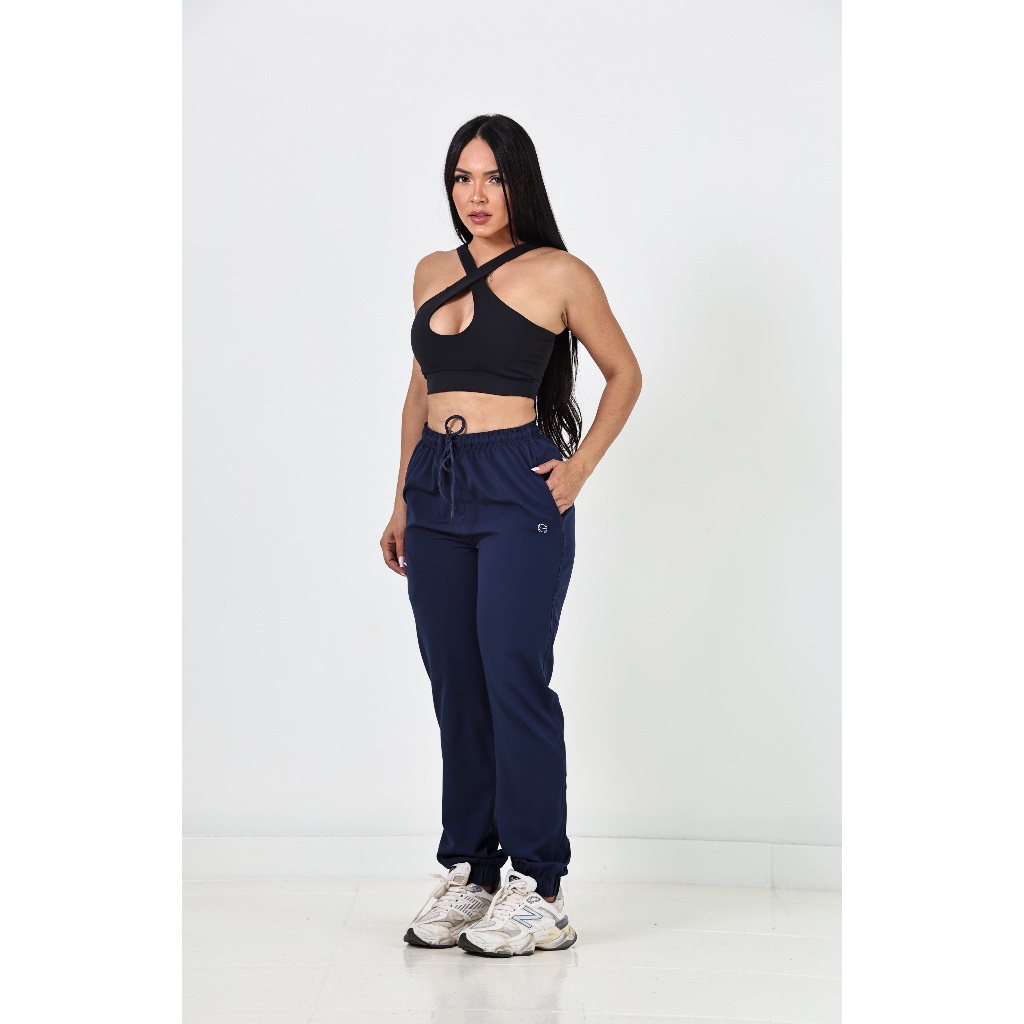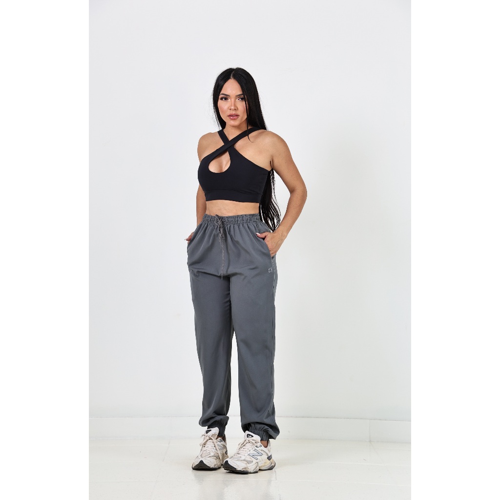 Calça Feminina Jogger Em Tactel Com Elastano Bolsos E Cordão